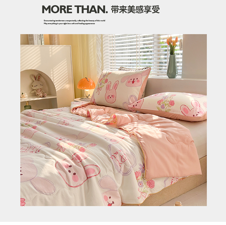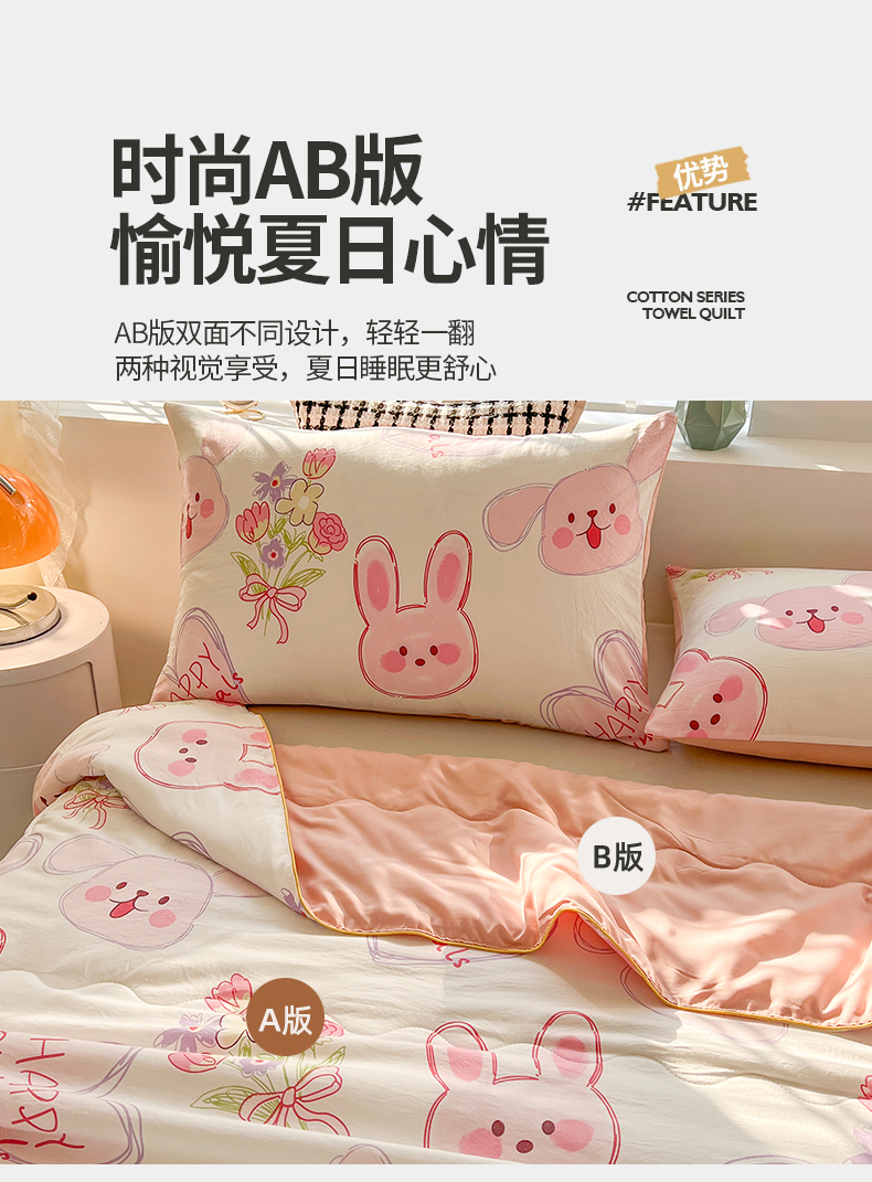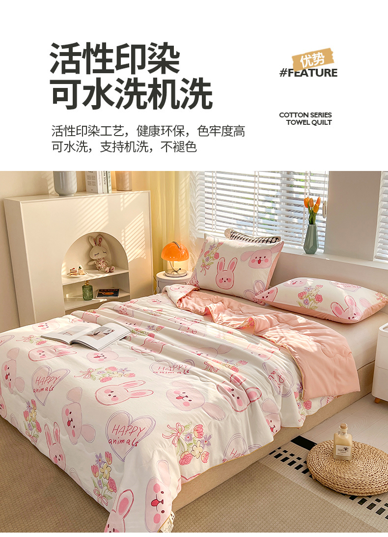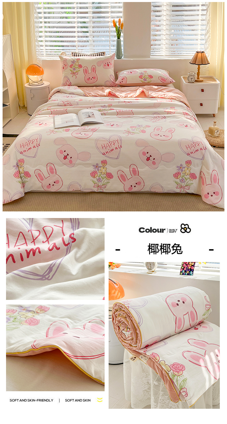 商品名称:艺菲阁家纺 2024新款大豆蛋白水洗双层纱夏被 椰椰兔