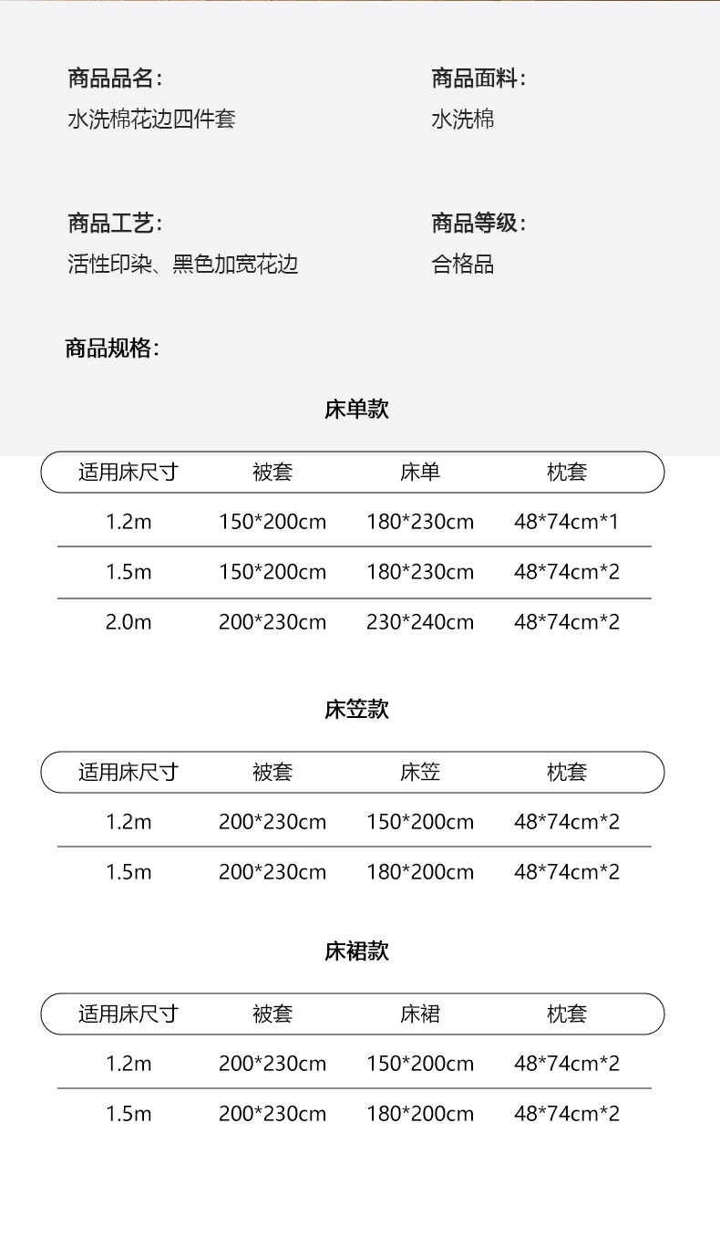 1.8m床裙款四件套(被套200*230) | ¥78.00 |