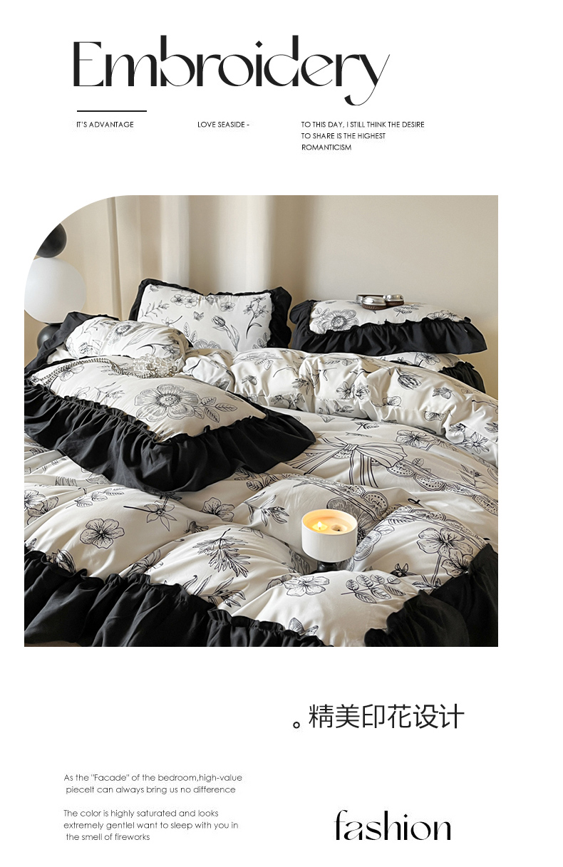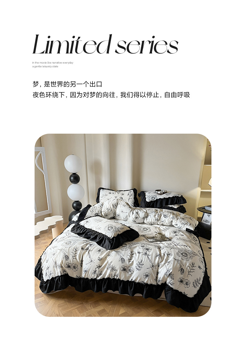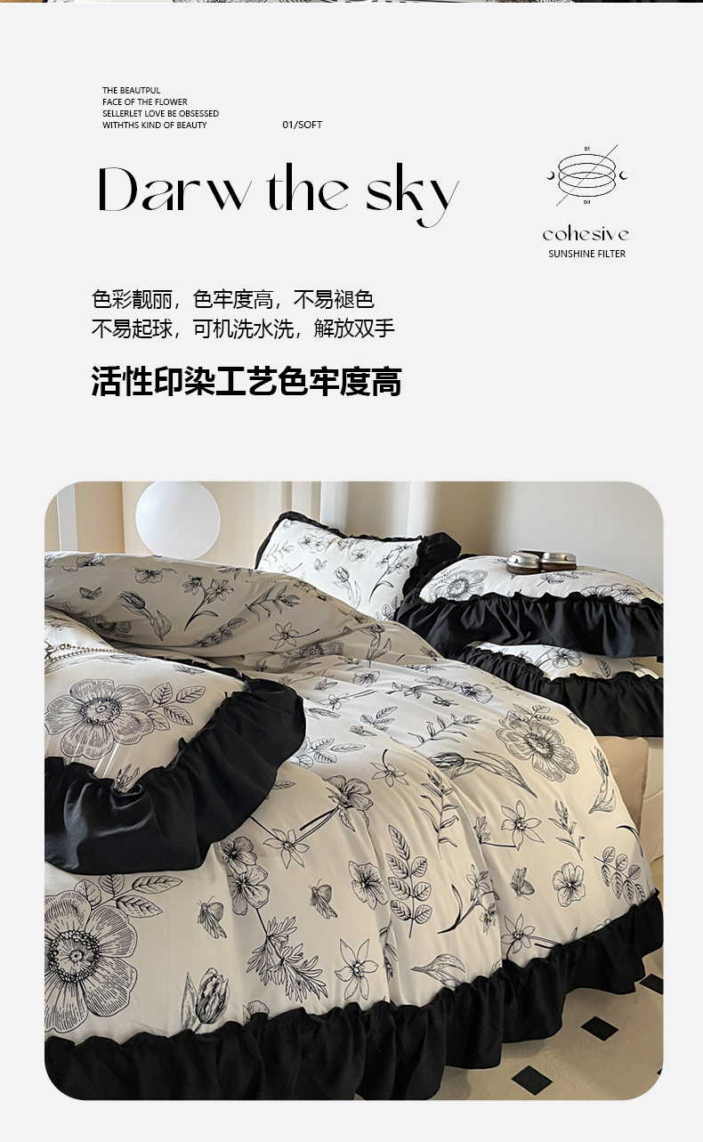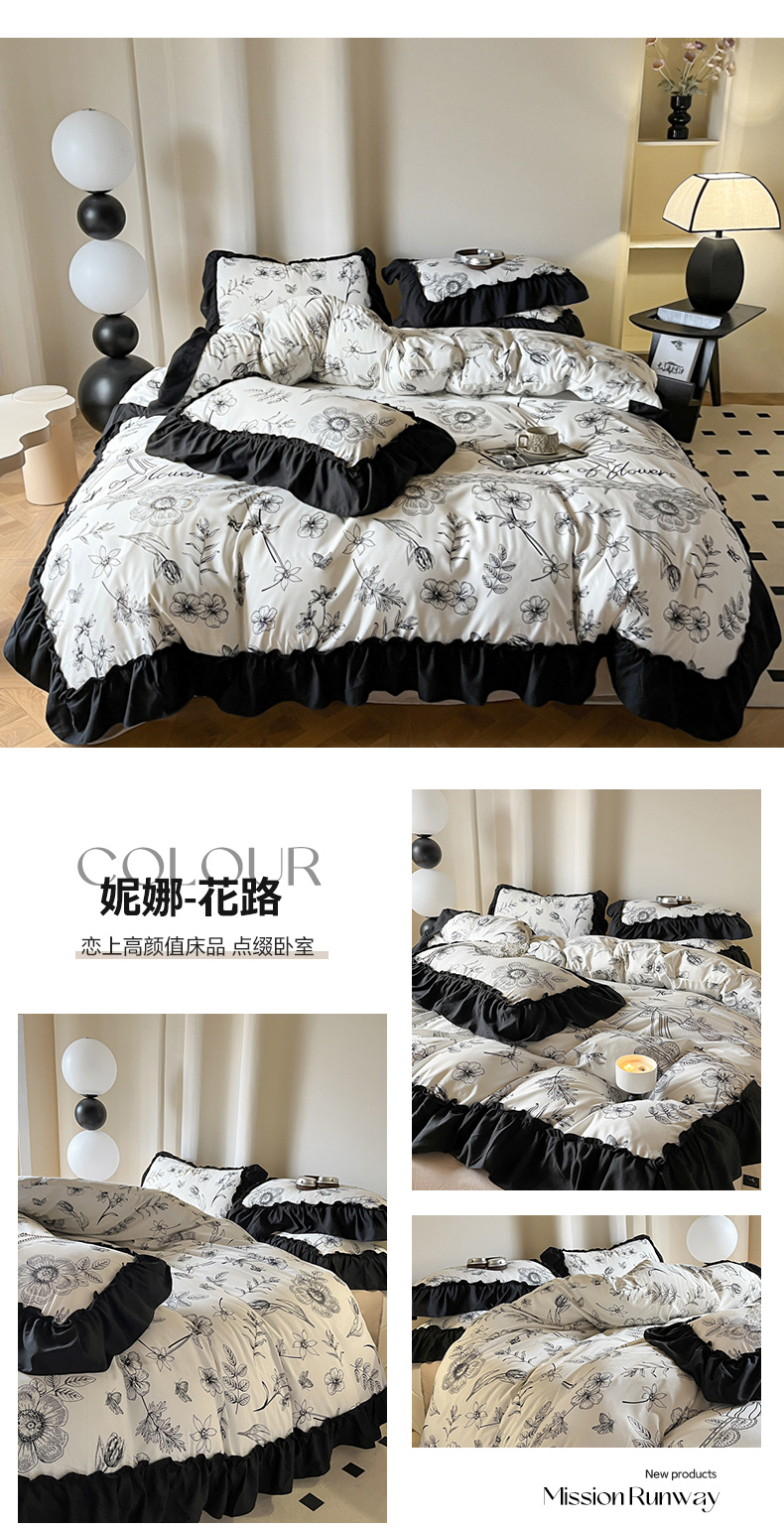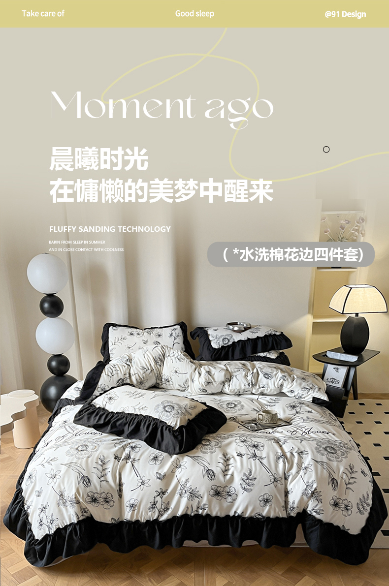 当前位置: 91家纺网 > 商品网购 > 床品套件 > 四件套 > 水洗棉四件套 > 花伞家居 2024新款水洗棉花边四件套-妮娜 妮娜-花路