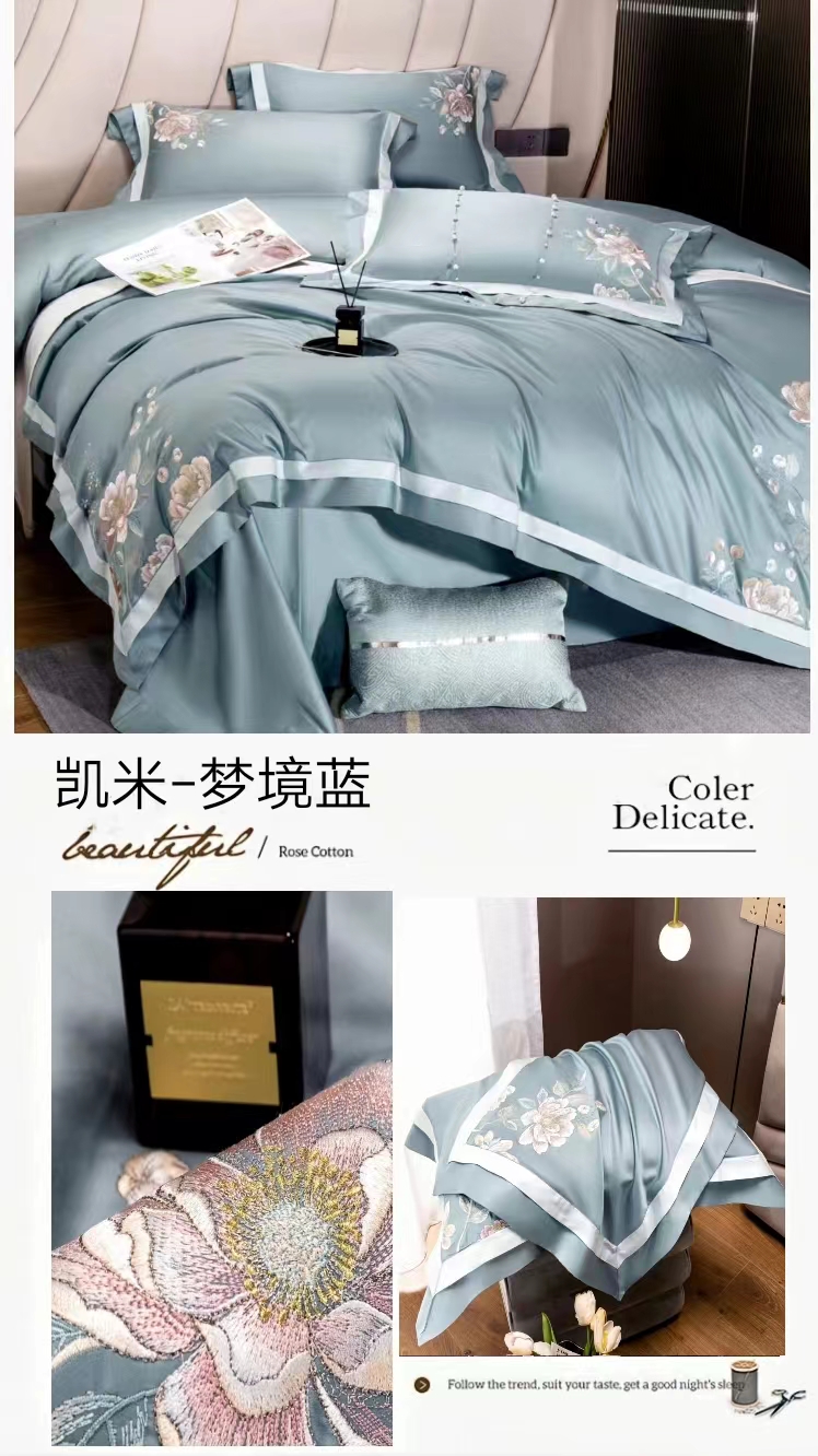 (总)2024婚庆送礼休闲居家50双股棉轻奢高端绣花圆角款四件套新品 ,斯丹里-宾利蓝,斯丹里-优雅灰,斯丹里-粉豆沙,斯丹里-浅天蓝,斯丹里-香宾金,斯丹里-香草绿