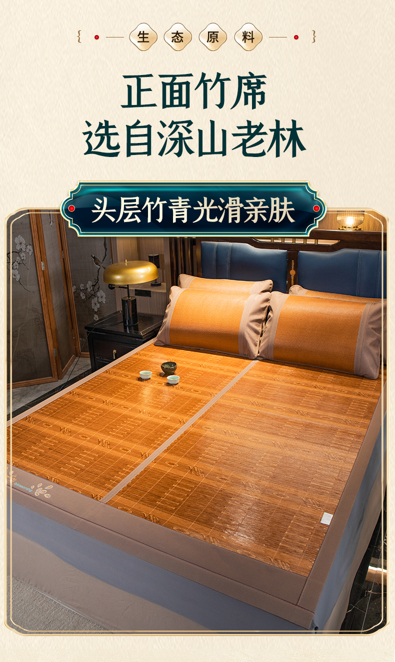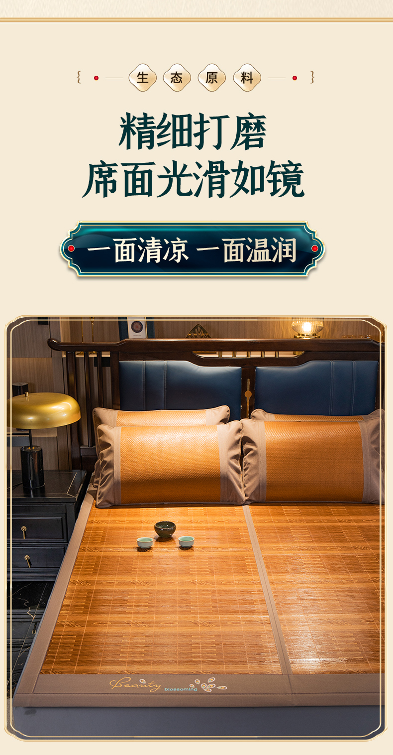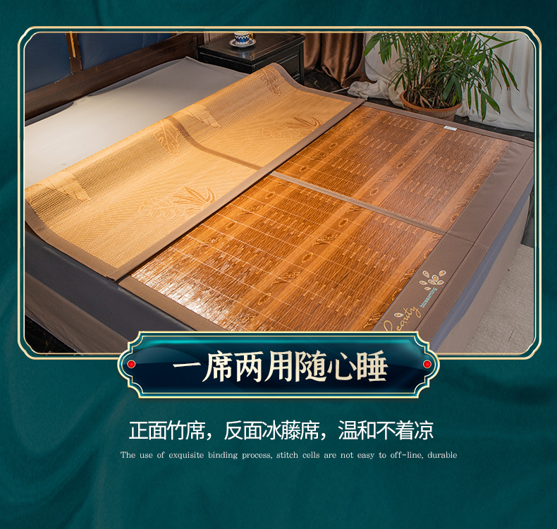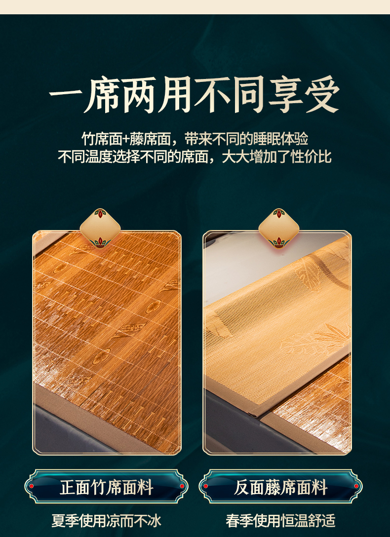商品名称:宜派家纺 2024新款亲肤可折叠双面竹席 吉祥如意