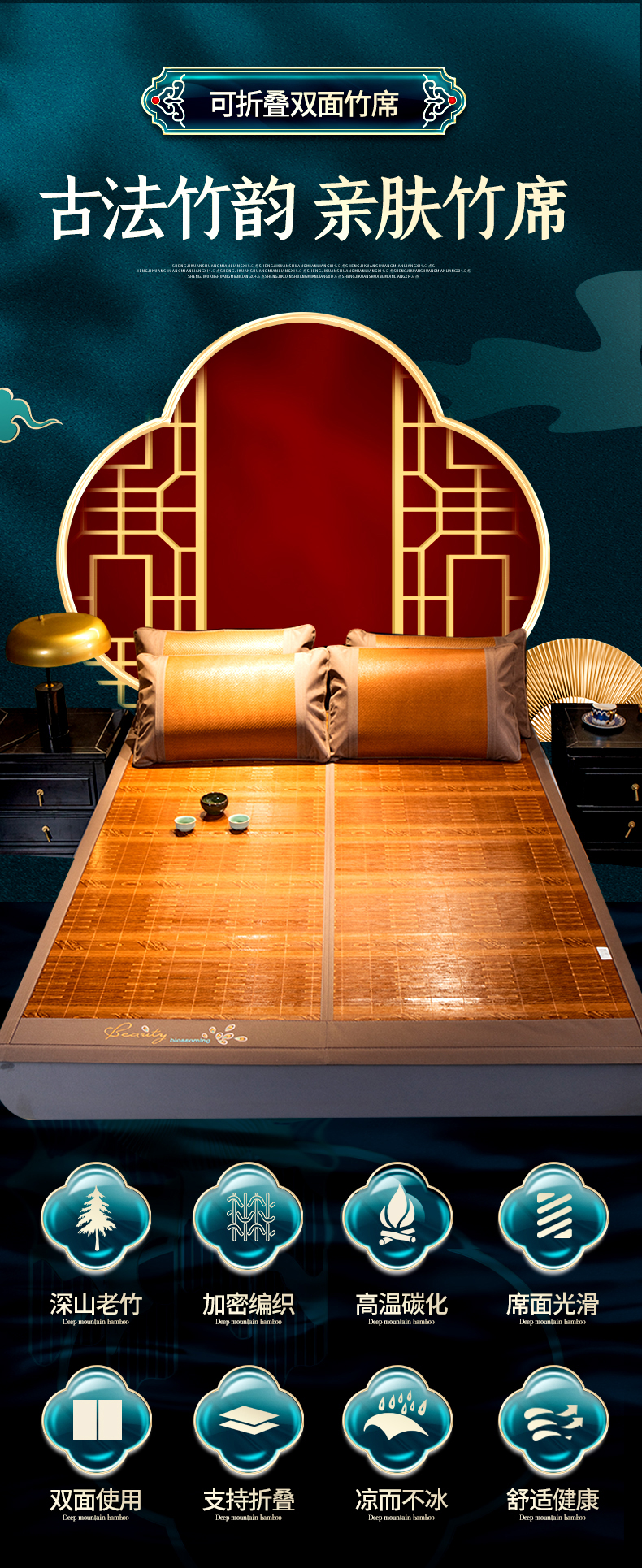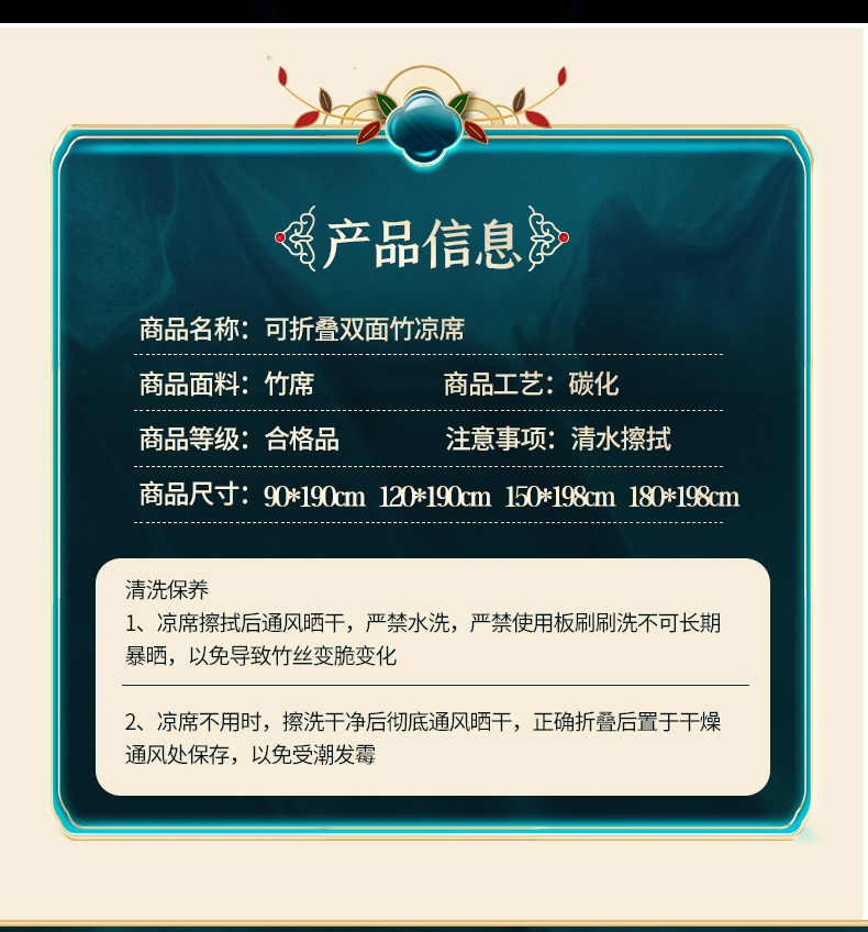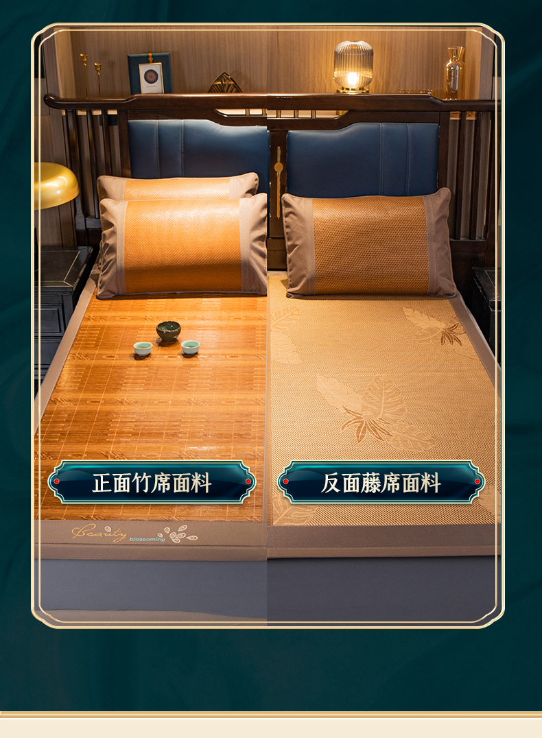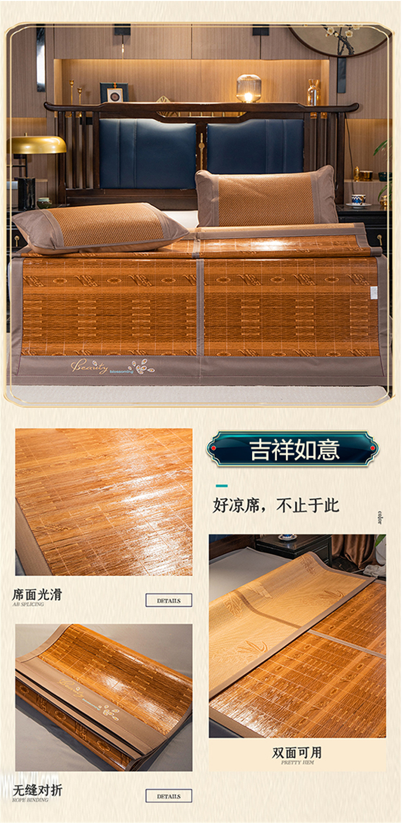 商品名称:宜派家纺 2024新款亲肤可折叠双面竹席 吉祥如意