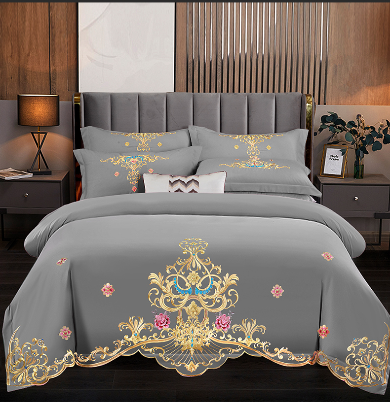 当前位置: 91家纺网 > 商品网购 > 床品套件 > 四件套 > 婚庆四件套 > 慕她家纺 2025新款磨毛婚庆四件套结婚刺绣花床品六喜庆 盛世庄园 经典灰