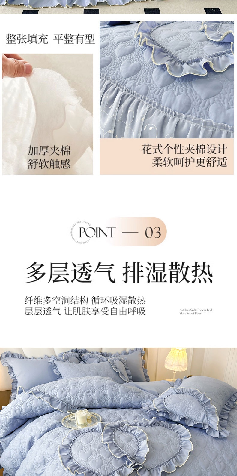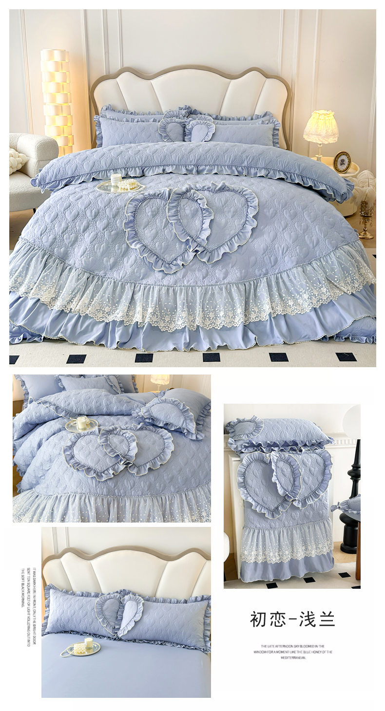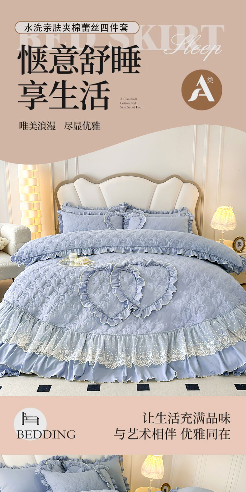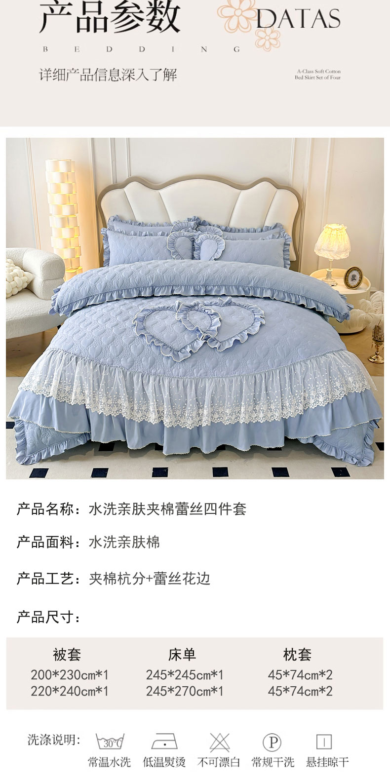 兴美佳 2024新款水洗棉亲肤绗缝四件套--初恋 初恋-浅兰
