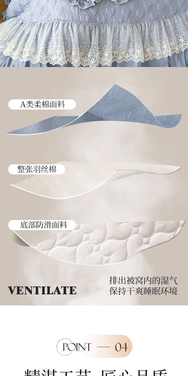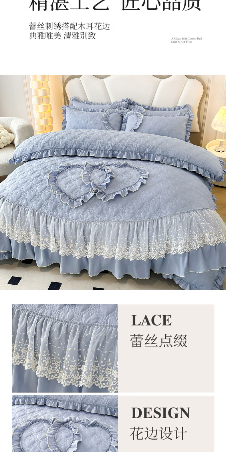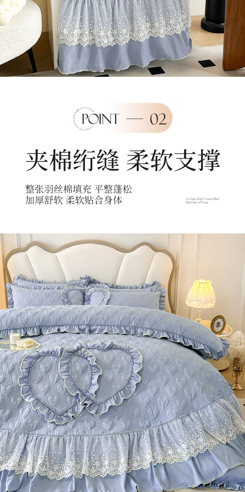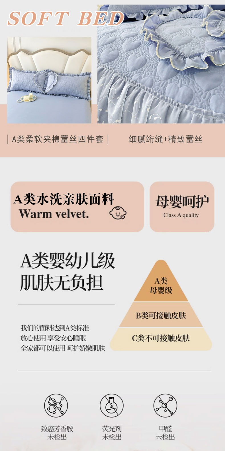 兴美佳 2024新款水洗棉亲肤绗缝四件套--初恋 初恋-浅兰