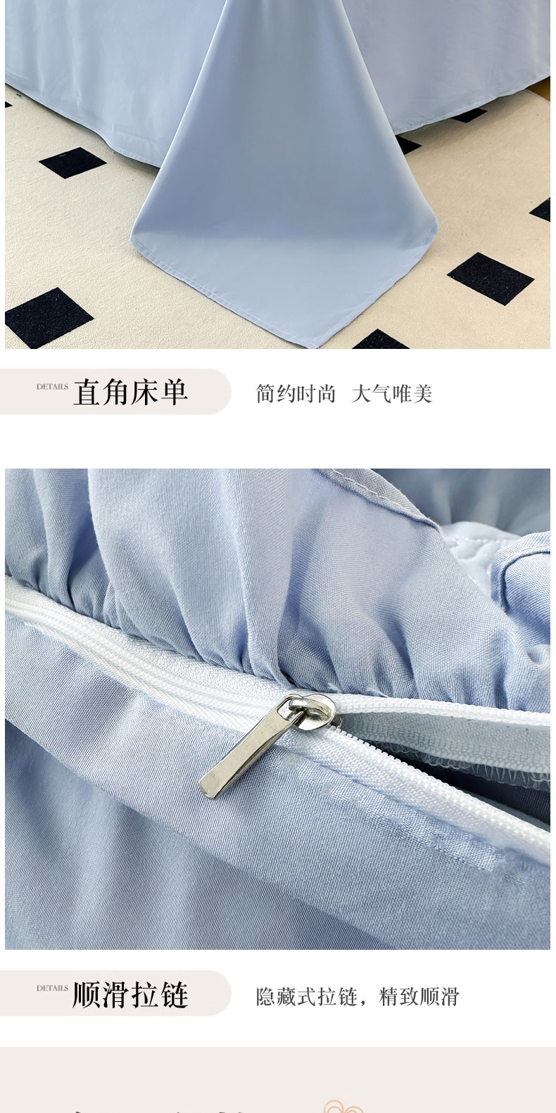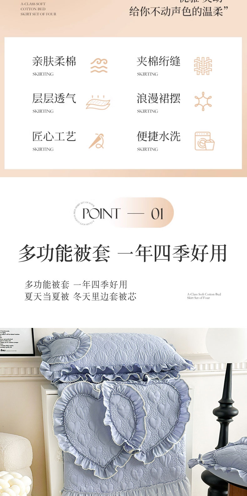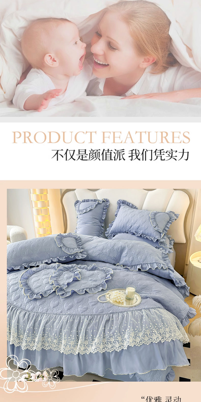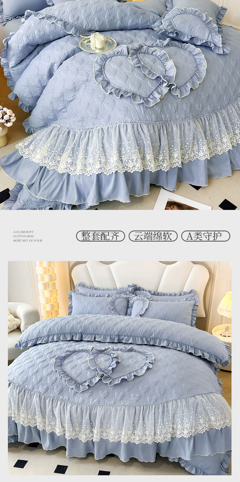 兴美佳 2024新款水洗棉亲肤绗缝四件套--初恋 初恋-浅兰