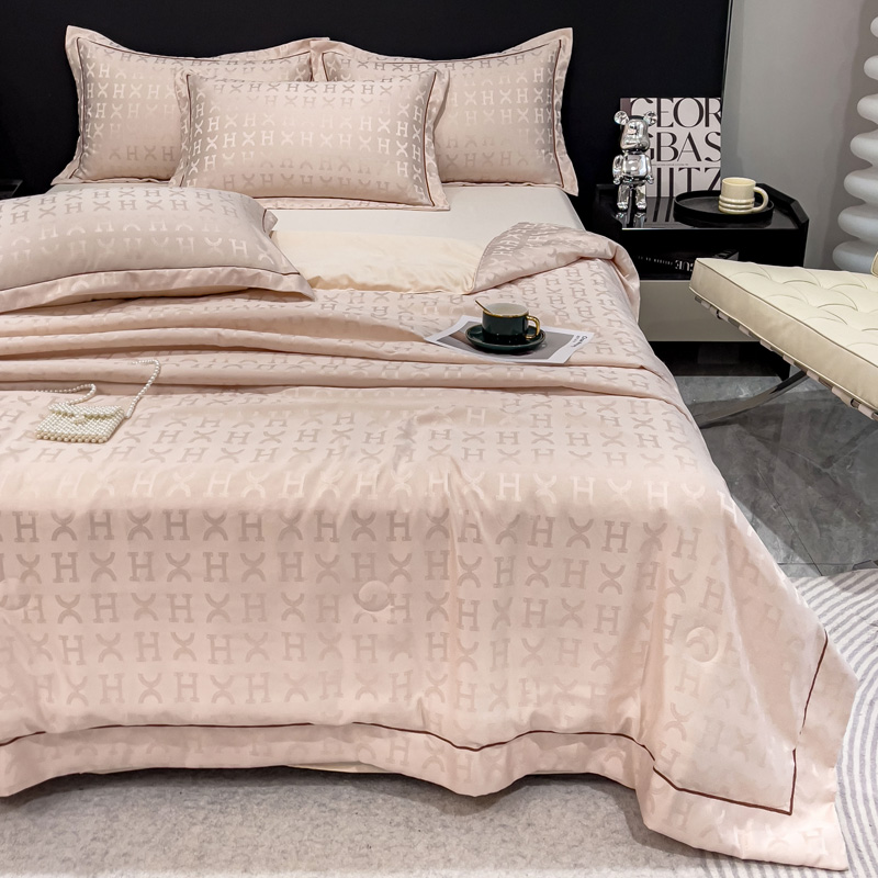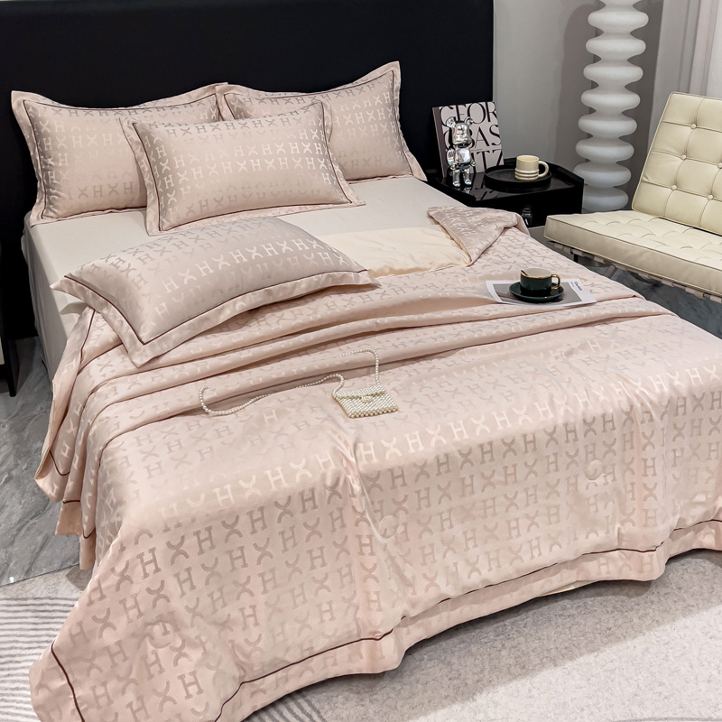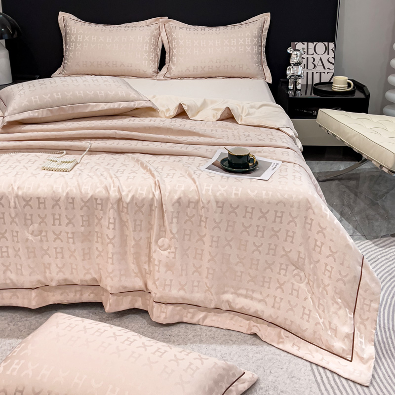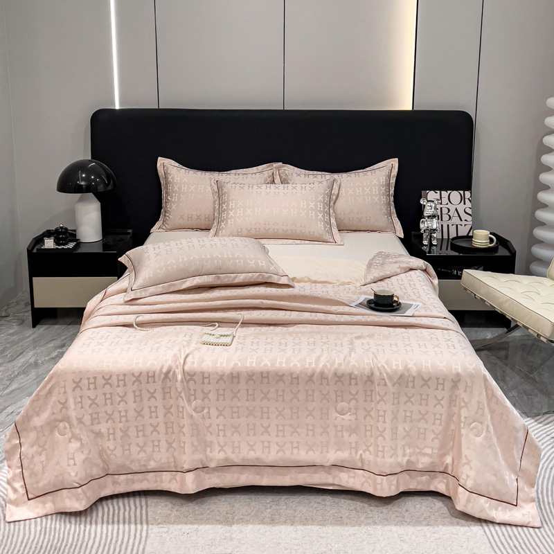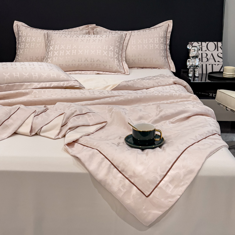 丽卡家纺 2024新款60s贡缎提花水洗天丝夏被四件套-莫奈 莫奈-香槟金