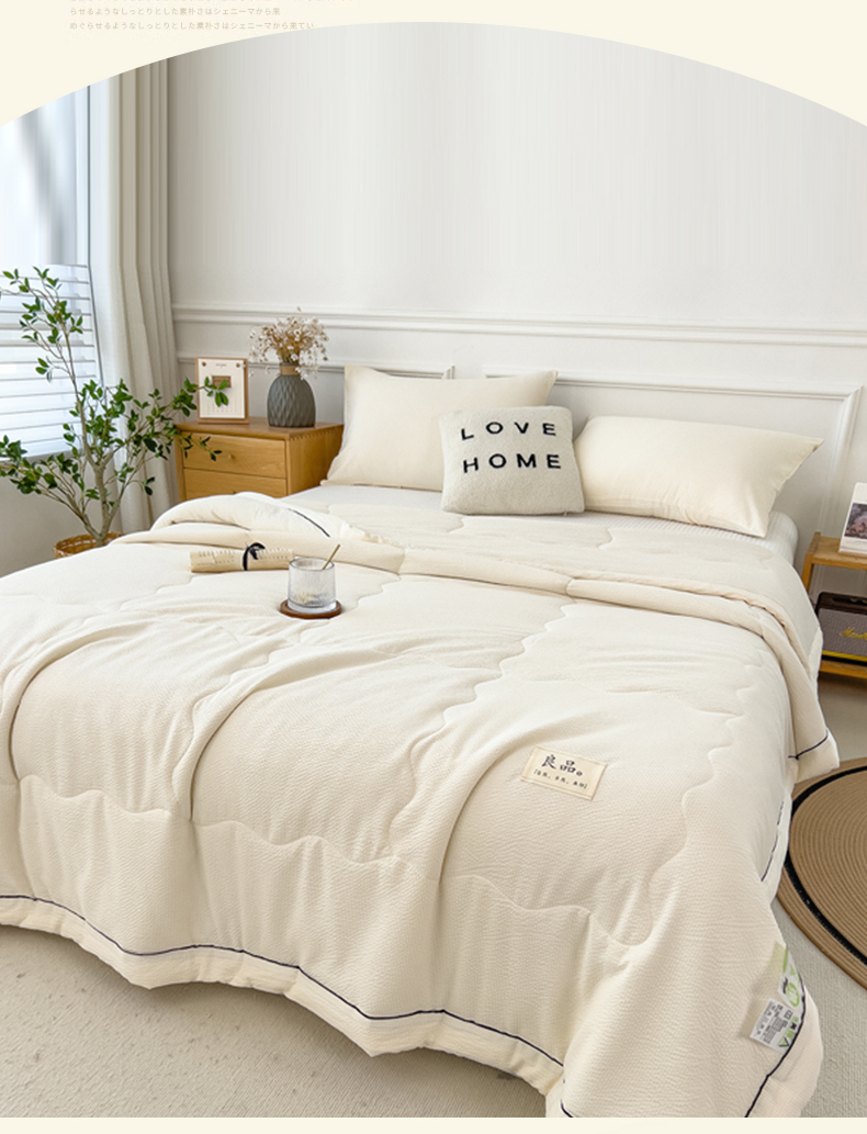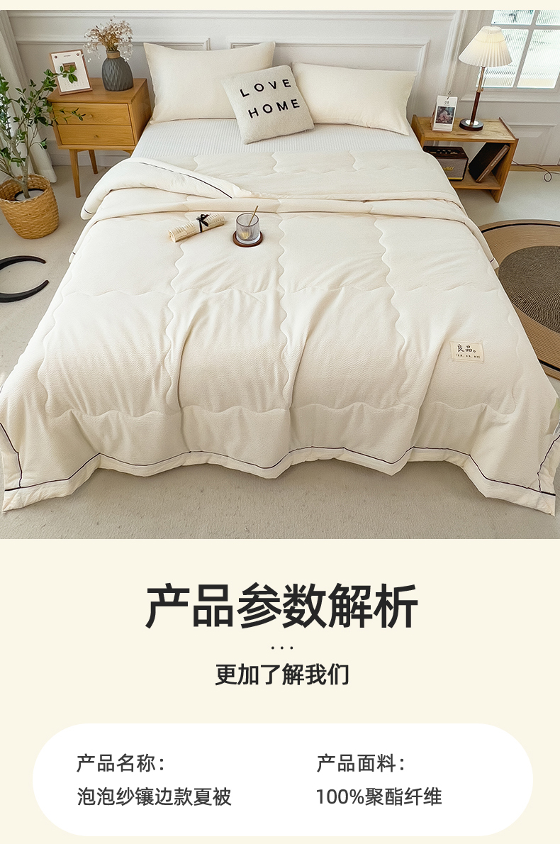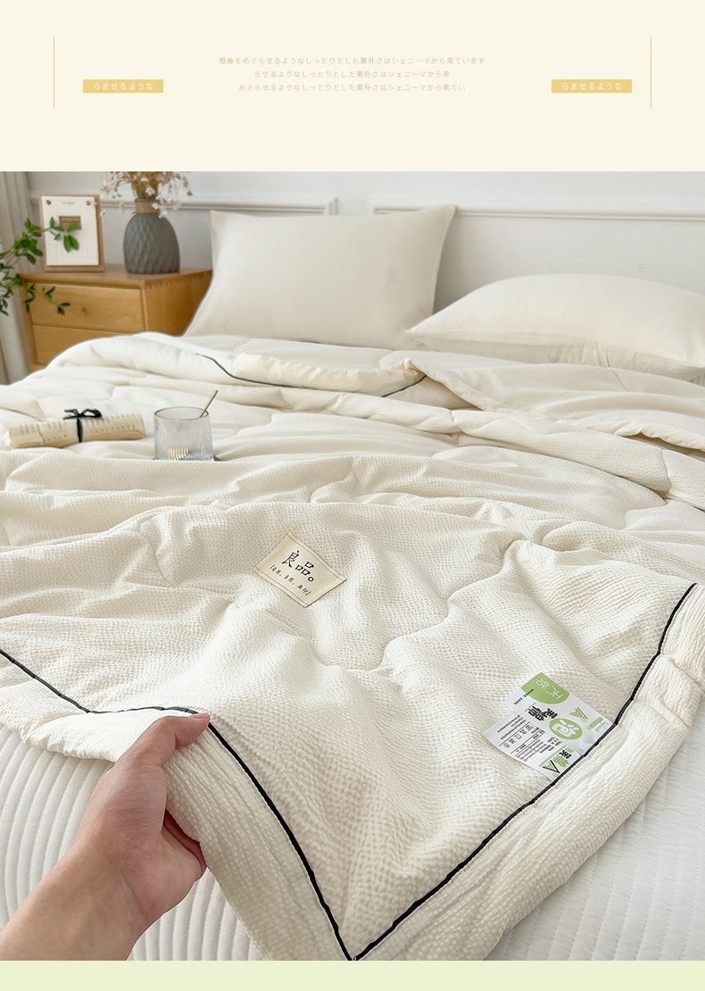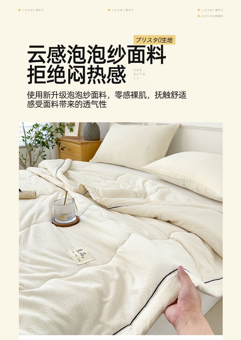 丝幔家纺 2025新款A类泡泡纱镶边款夏被 珍珠白