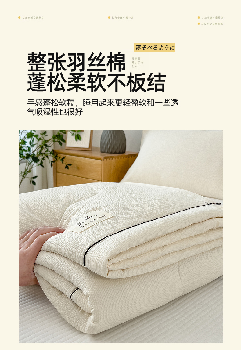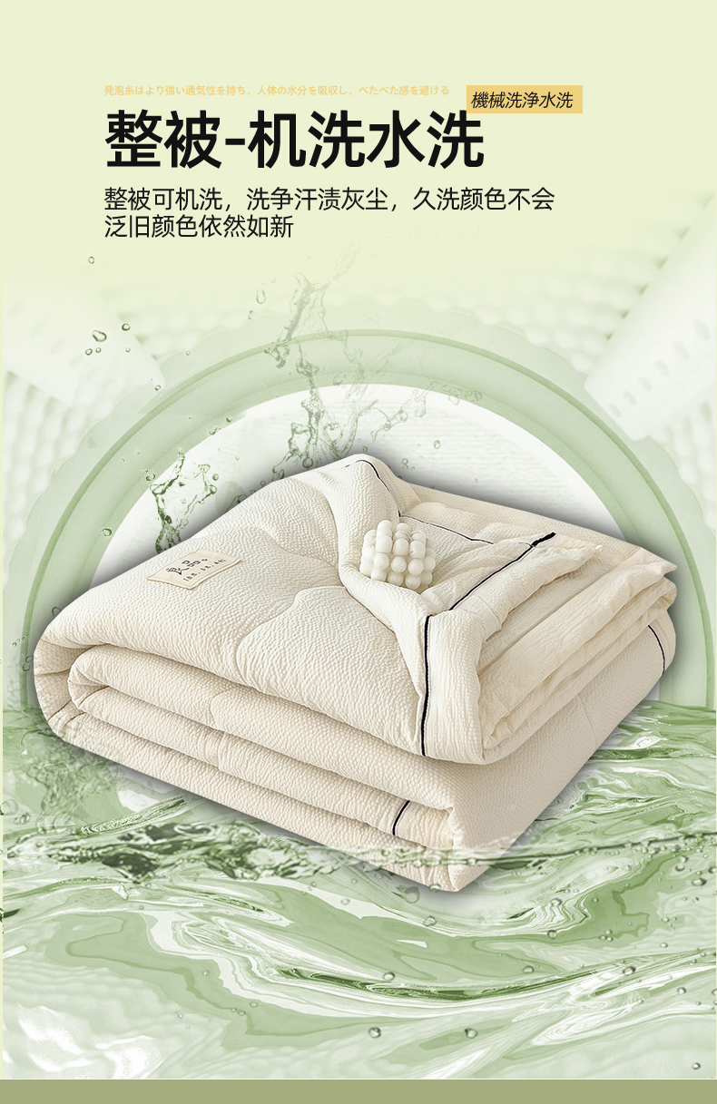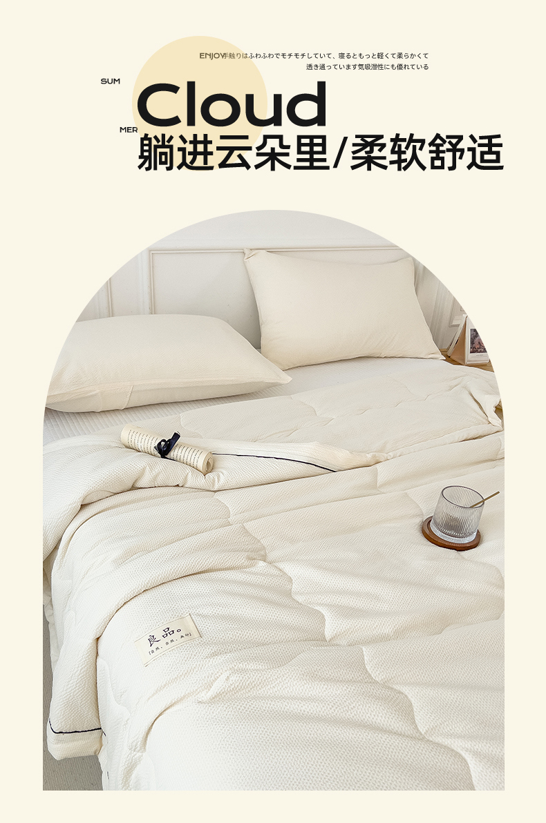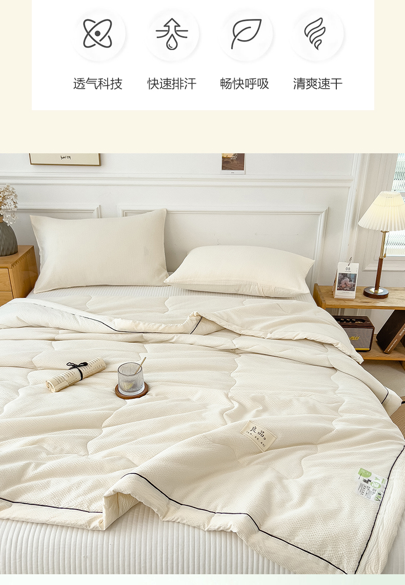 丝幔家纺 2025新款A类泡泡纱镶边款夏被 珍珠白