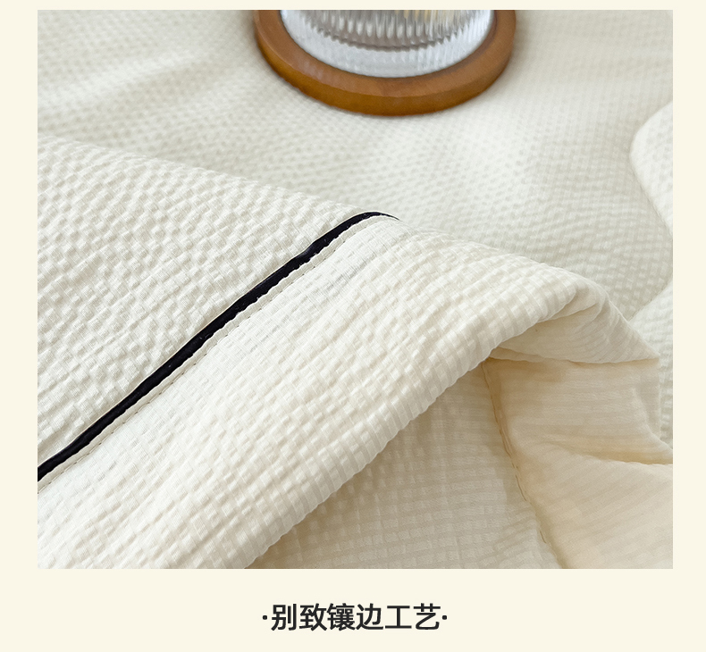 (总)丝幔家纺 2025新款A类泡泡纱镶边款夏被,薄荷蓝,豆沙玉,卡其,柠檬黄,牛油果绿,千黛紫,雾霾蓝,烟雨灰,珍珠白