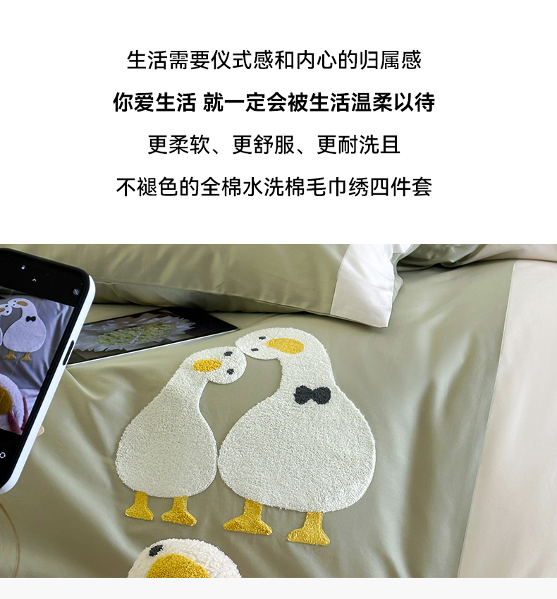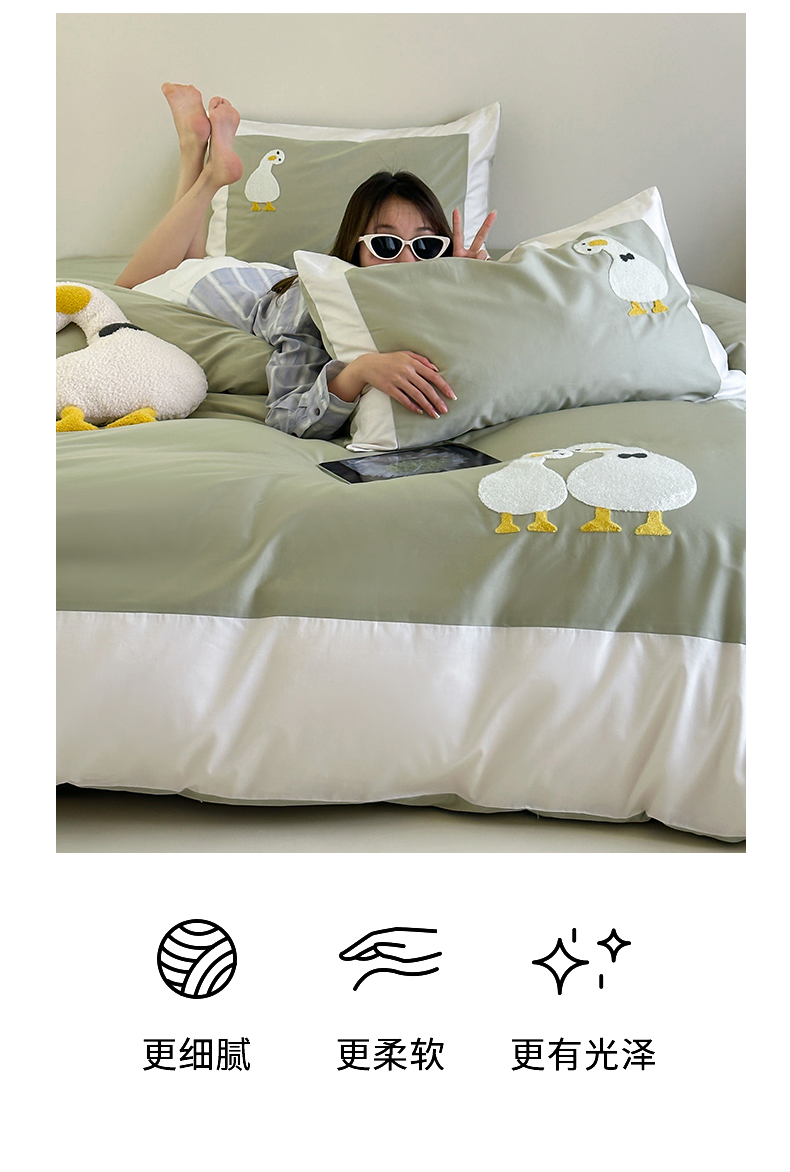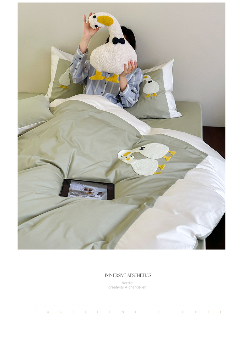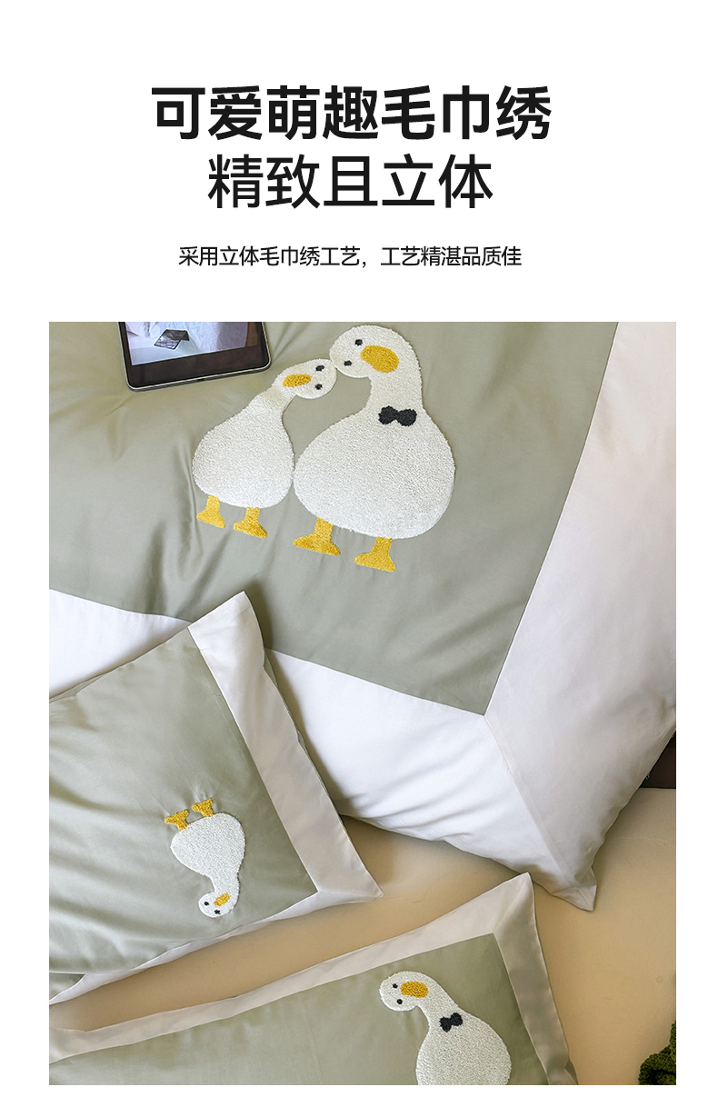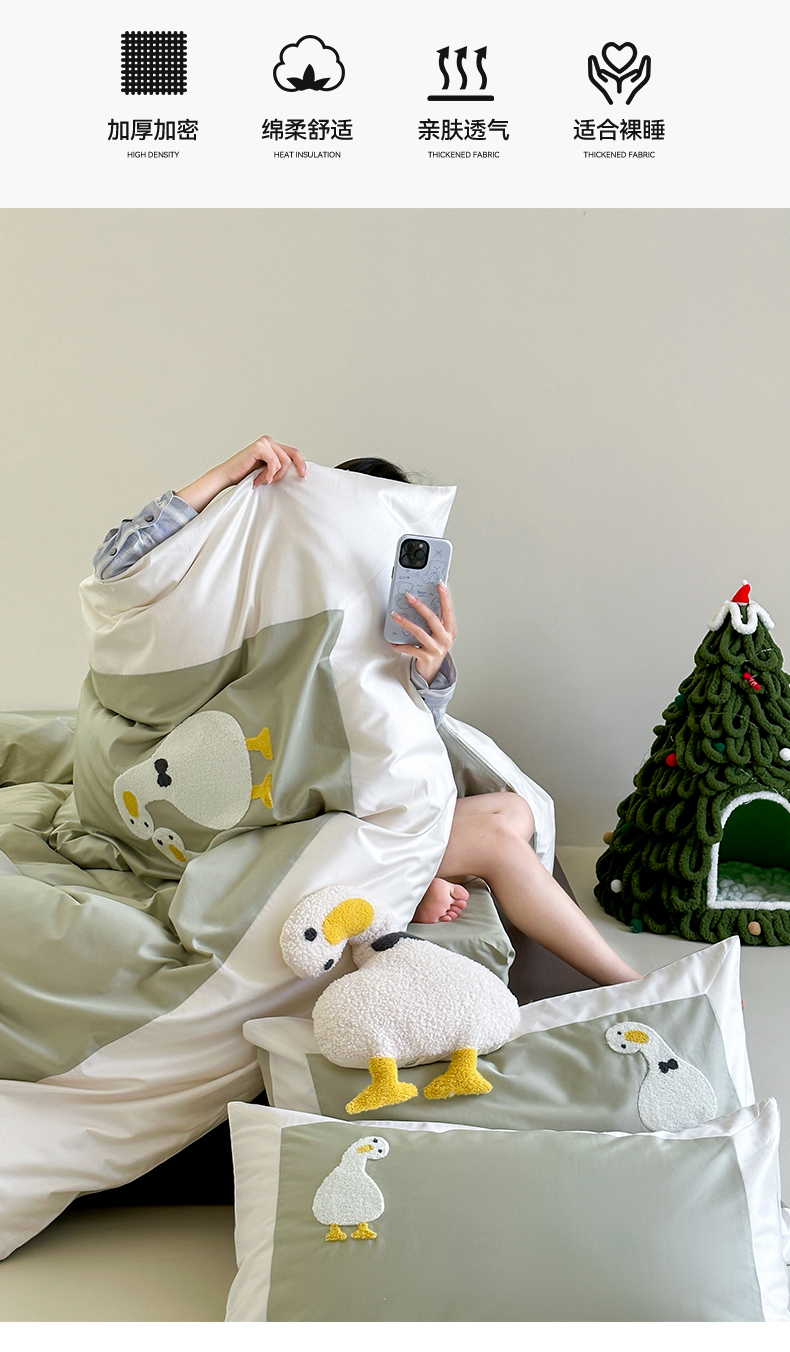 名品优仓 2024新款大拼角水洗棉四件套 歪头鸭
