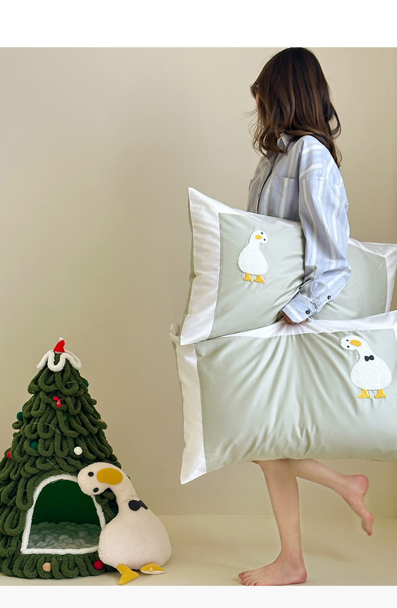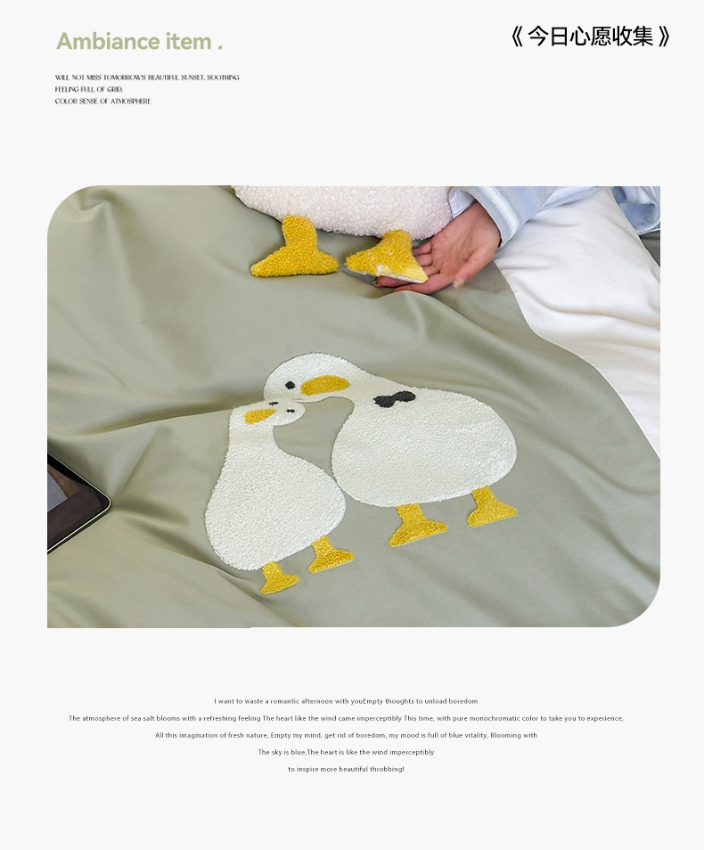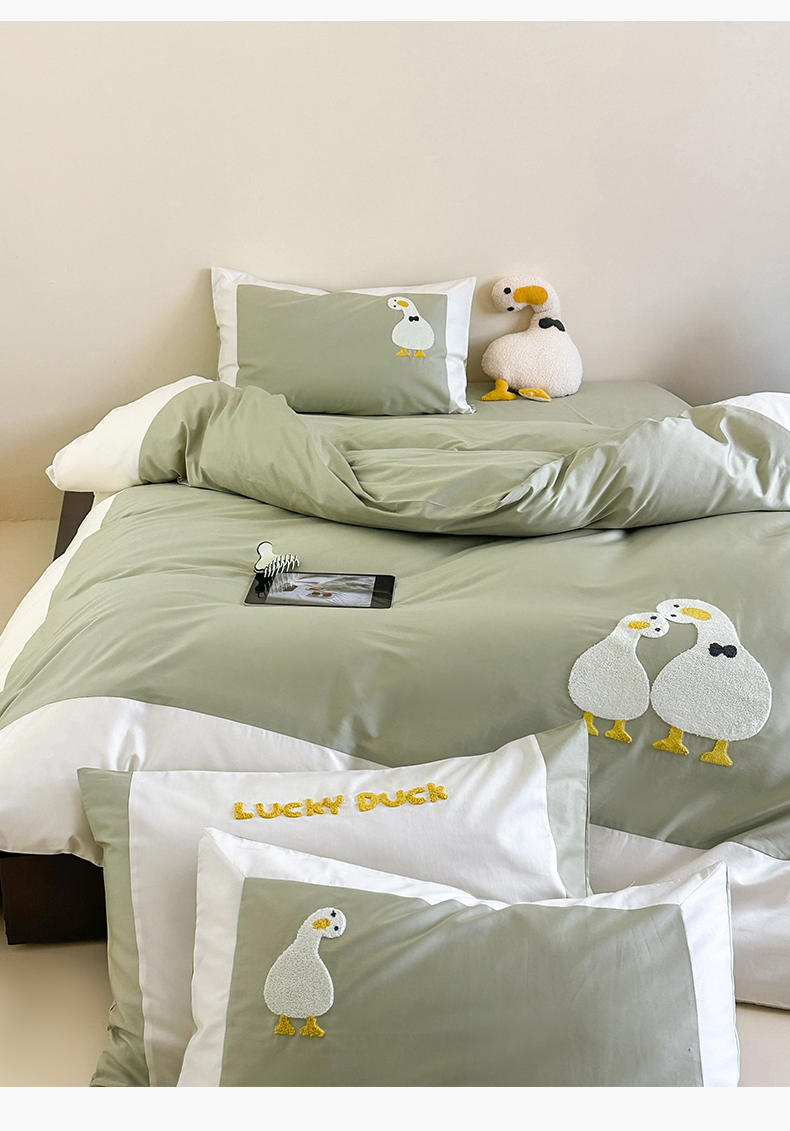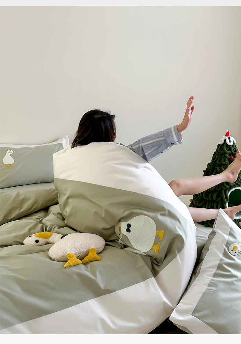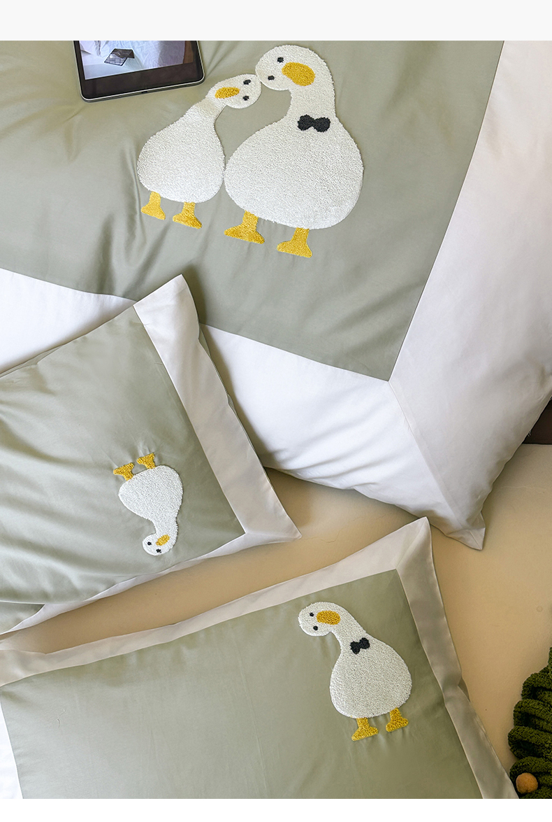 名品优仓 2024新款大拼角水洗棉四件套 歪头鸭