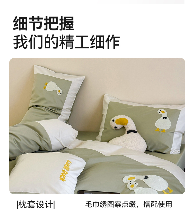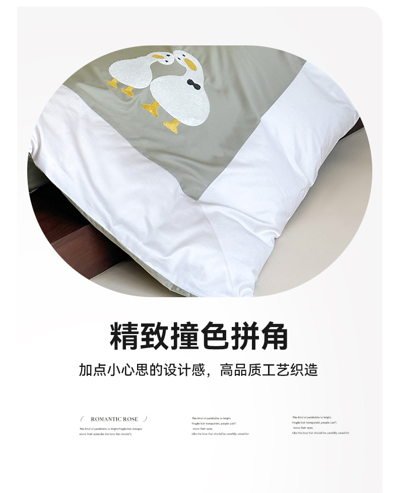 商品名称:名品优仓 2024新款大拼角水洗棉四件套 歪头鸭