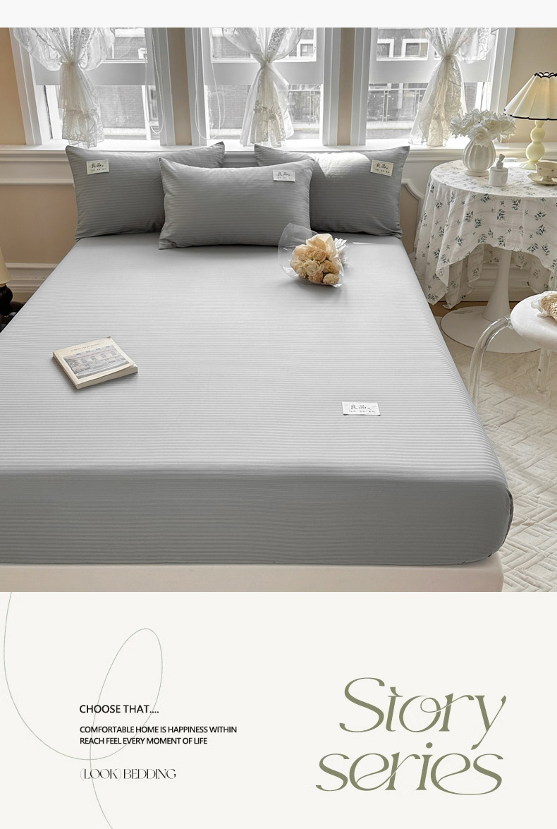 • 91家纺网 家纺一手货源 找家纺 眠博士 2024新款A类轻奢时尚全棉60贡缎提花床笠 床笠-提花雅灰