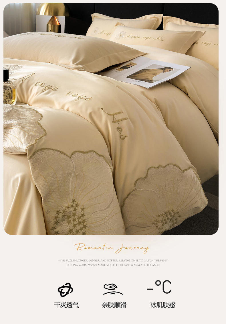 当前位置: 91家纺网 > 商品网购 > 床品套件 > 四件套 > 水洗真丝四件套 > 你好美丽 2025新款水洗真丝刺绣绮梦四件套 绮梦黄