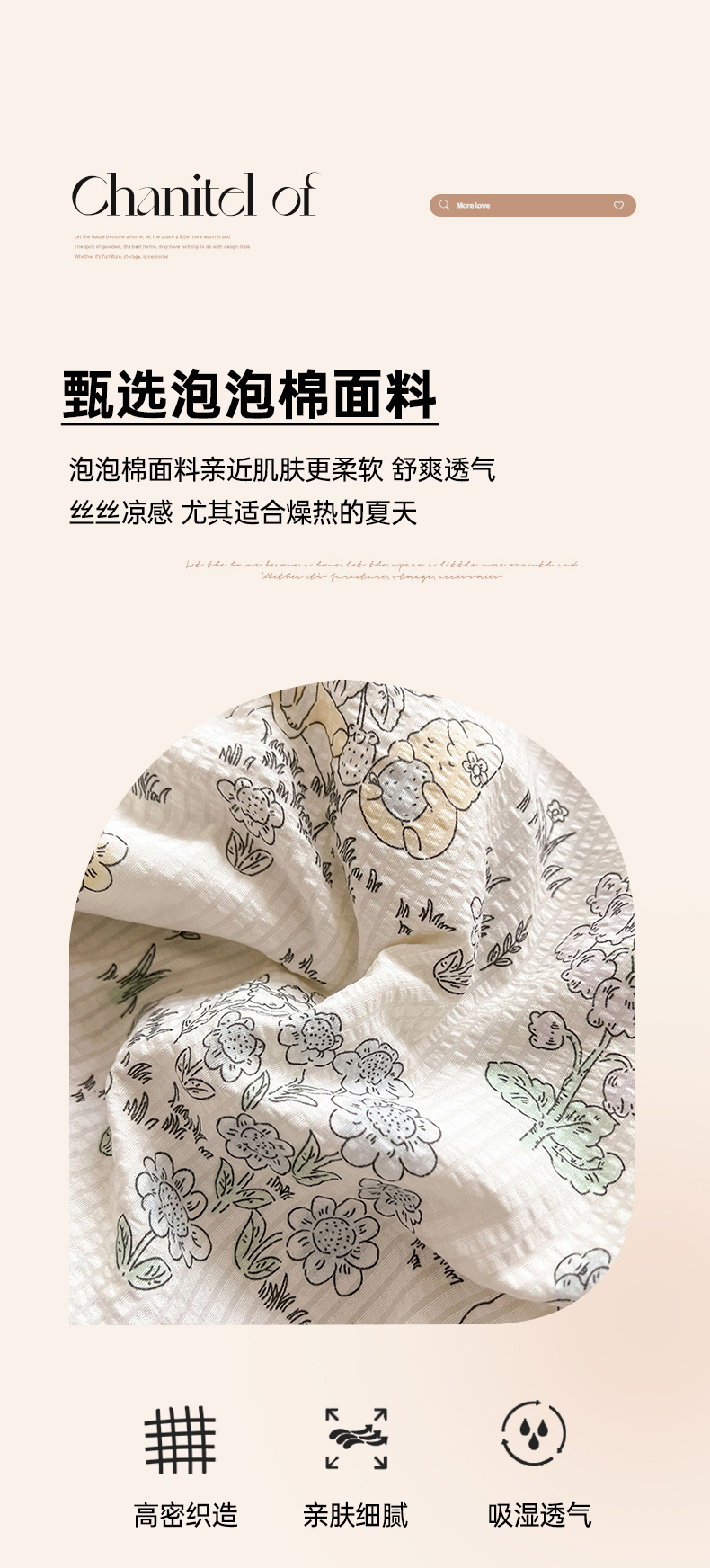 商品名称:韩约 2024新款1有氧提花时尚花边款泡泡夏被棉四件套 甜小兔