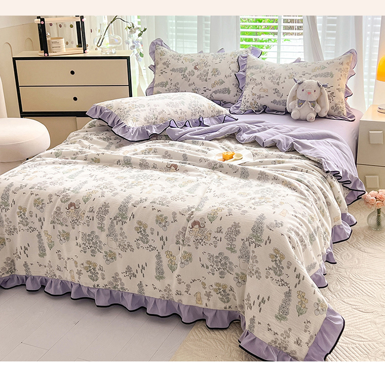 韩约 2024新款1有氧提花时尚花边款泡泡夏被棉四件套 甜小兔