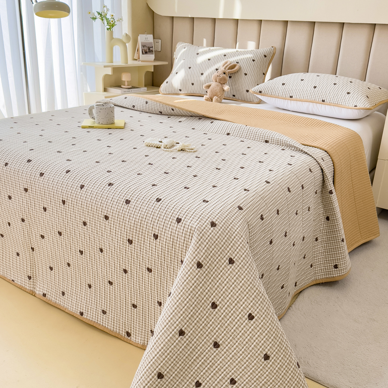 梵朴 2024新款纯棉水洗棉印花床盖 甜心