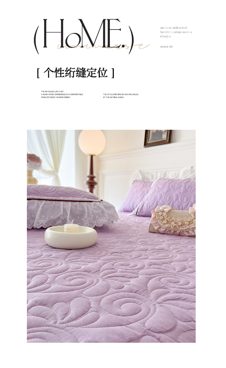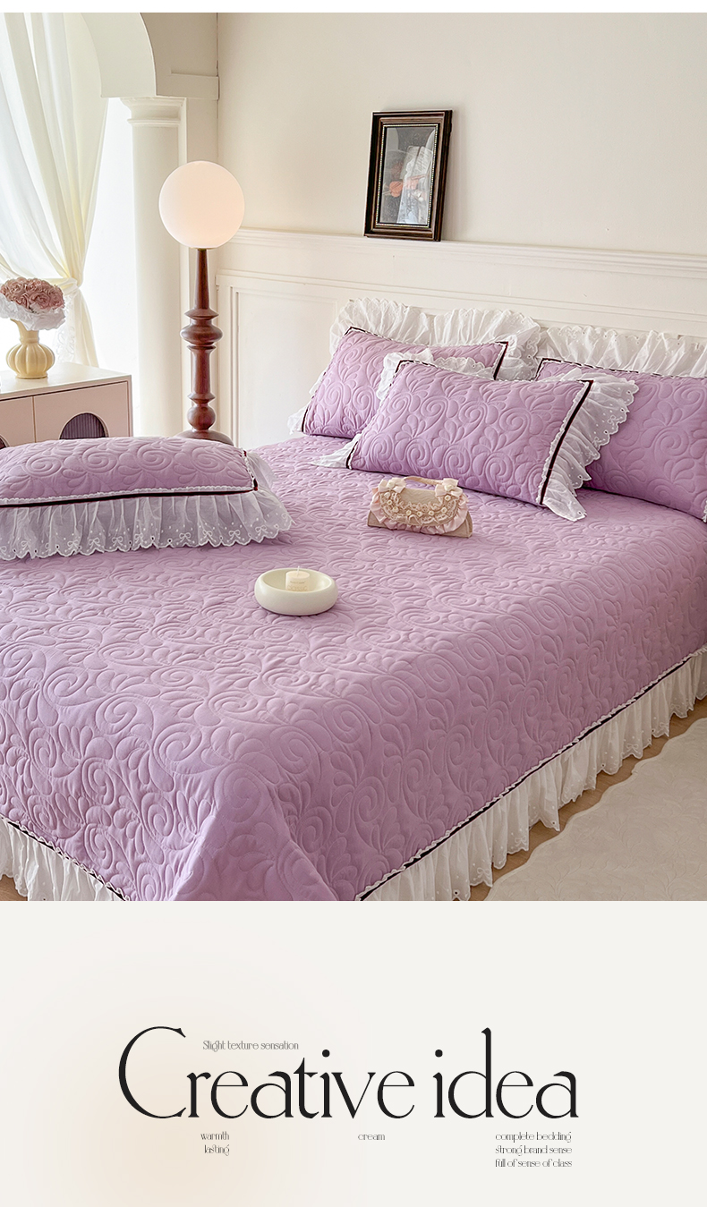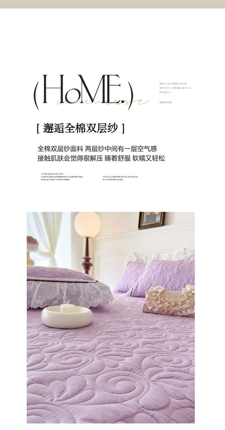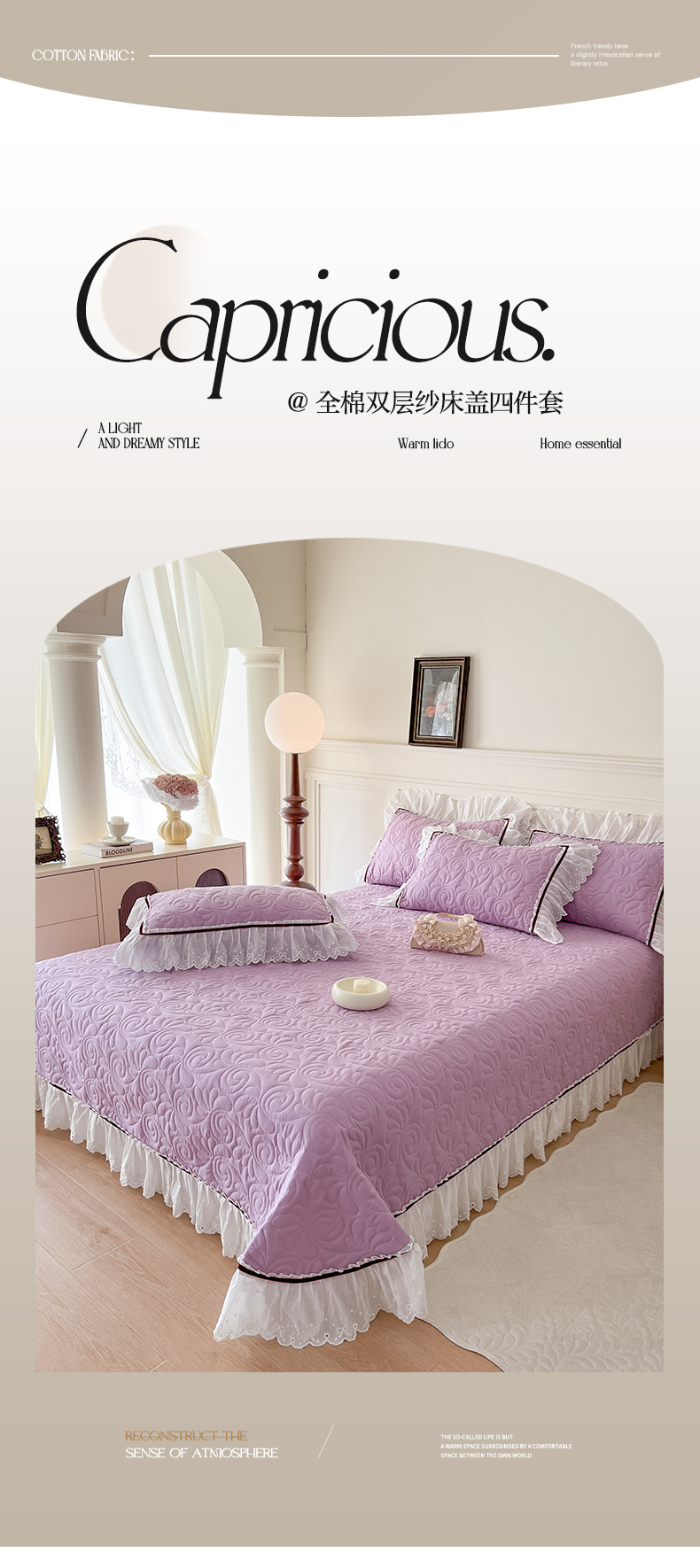 网红馆 2025新款全棉双层纱花边款爱丽丝系列单床盖 风信紫