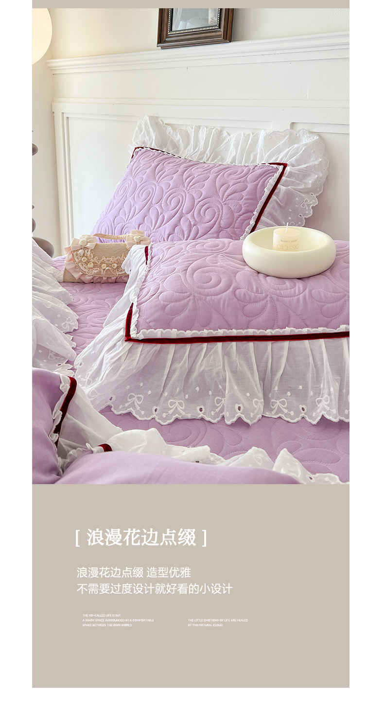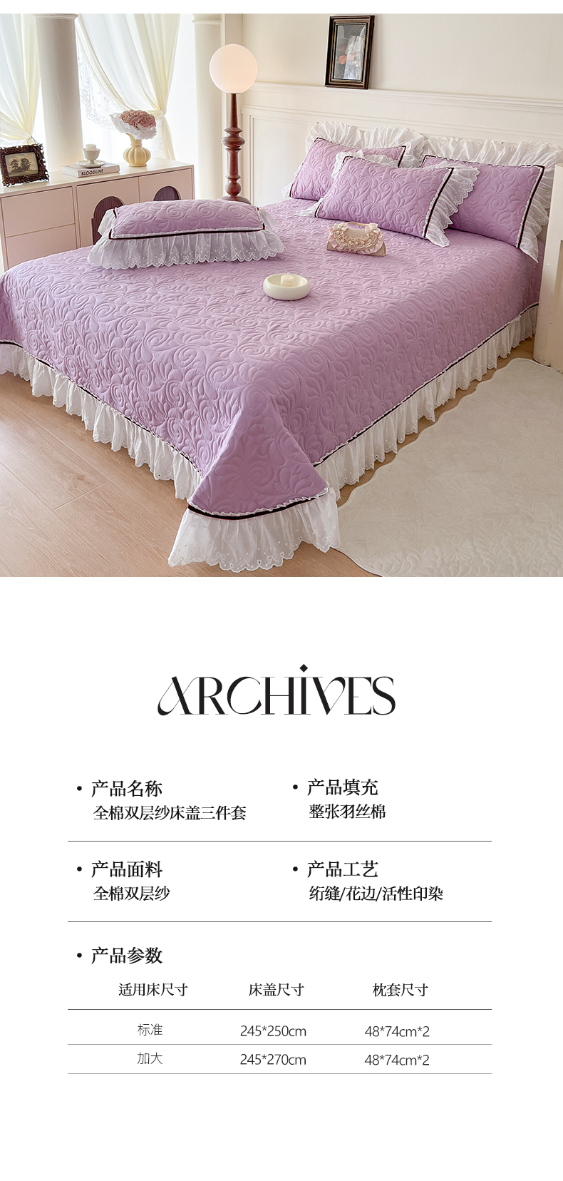 商品名称:网红馆 2025新款全棉双层纱花边款爱丽丝系列单床盖 风信紫