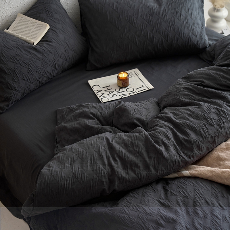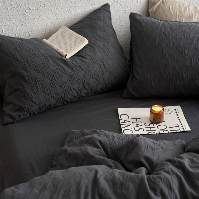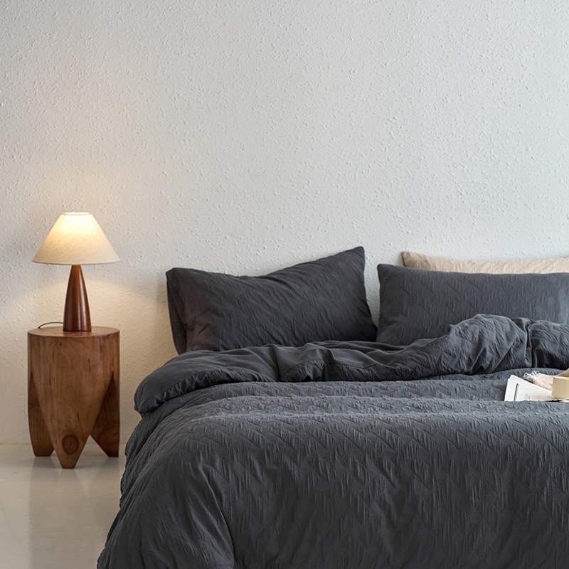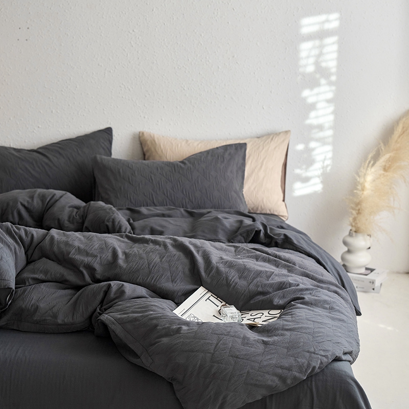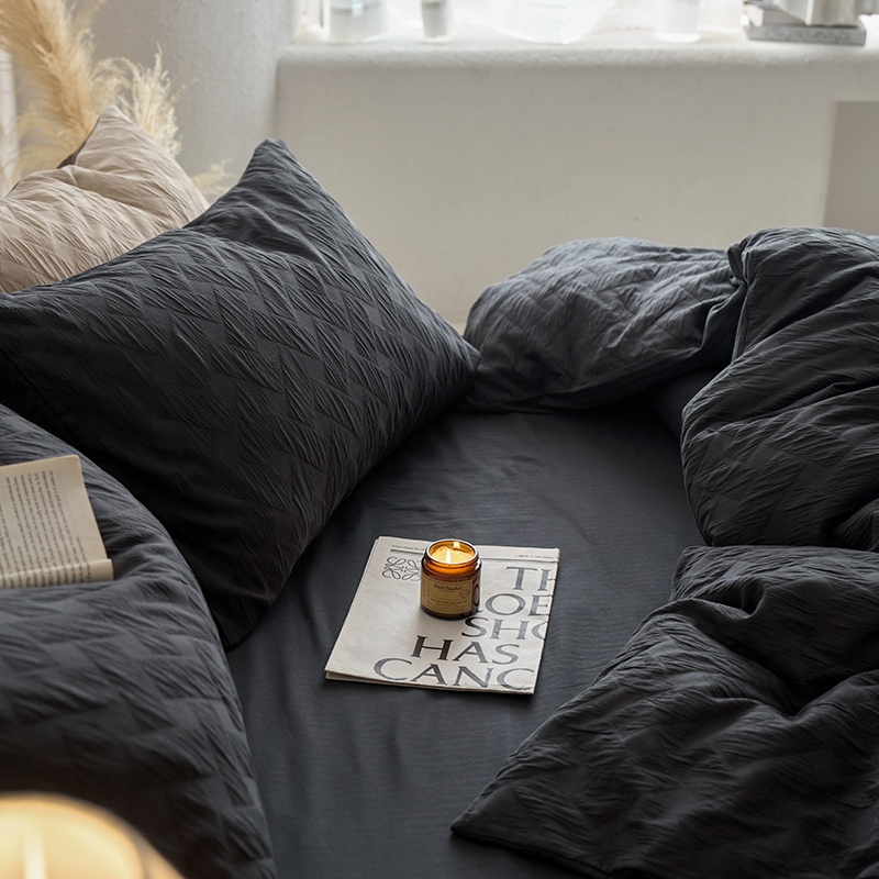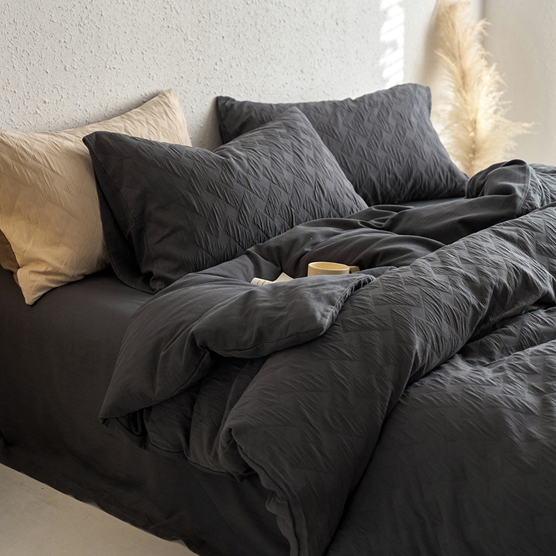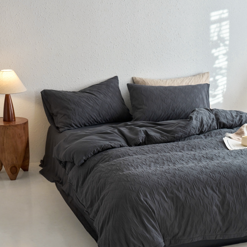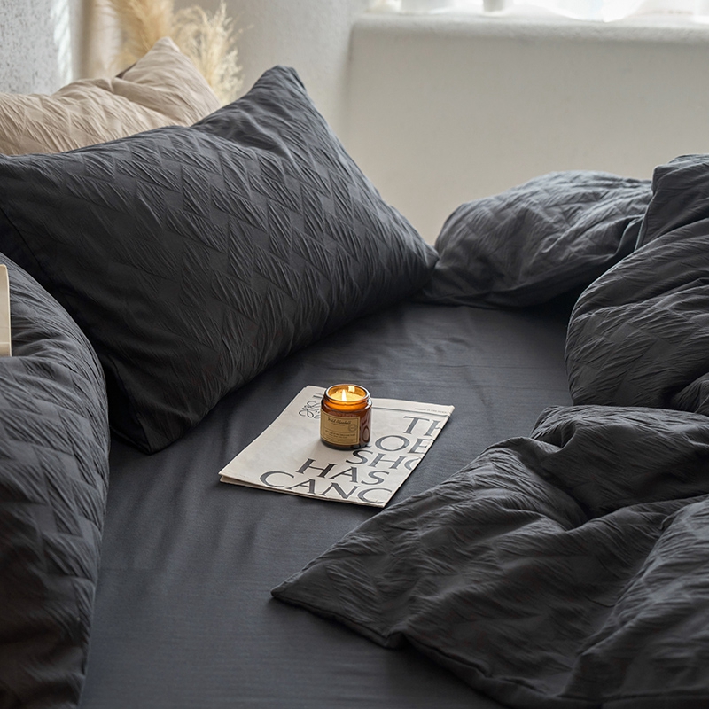 (总)梦享生活家居 2025新款全棉肌理纹提花四件套,灰黑色