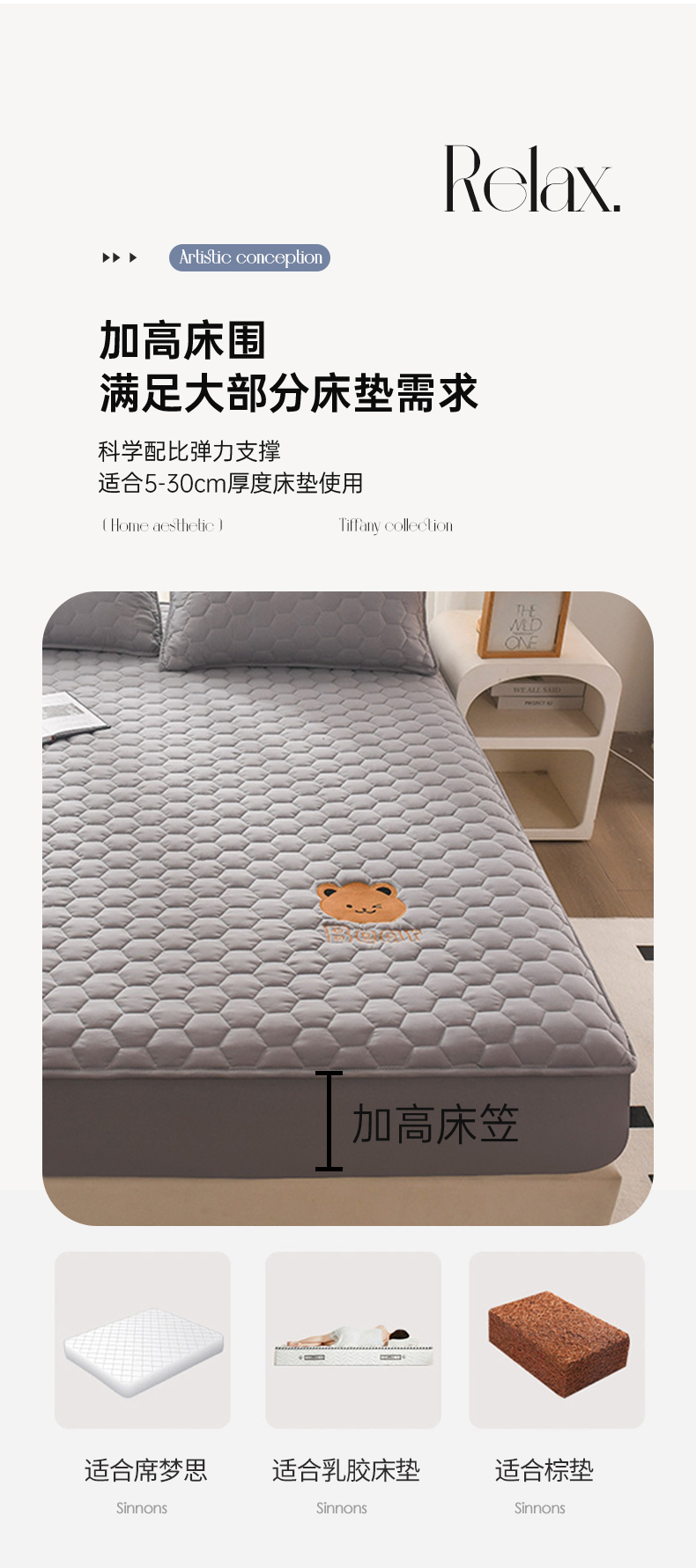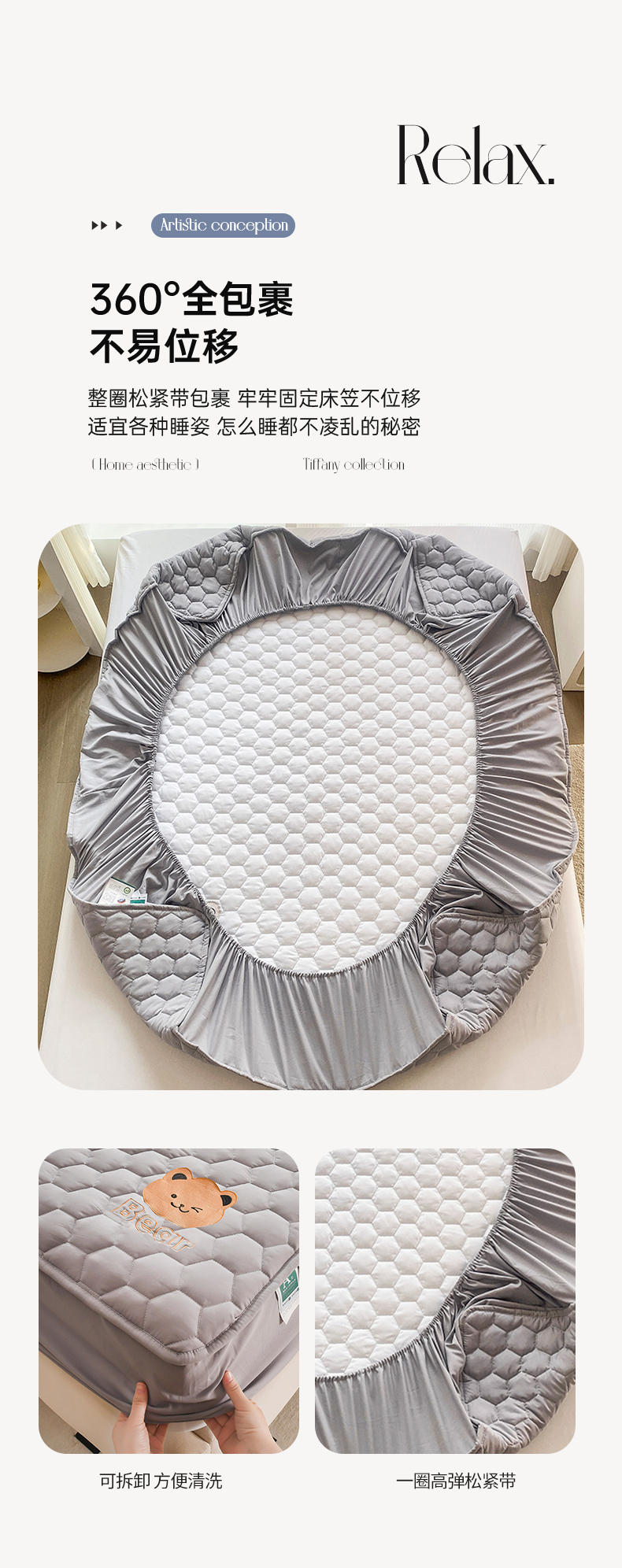 (总)九亭家纺 2025新款A类刺绣夹棉床笠,动物趴-卡其,动物趴-莱茵粉,动物趴-银灰,动物趴-云朵白