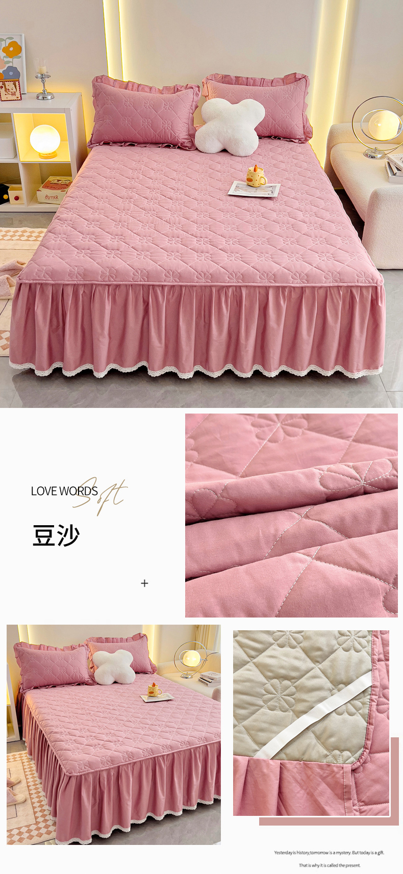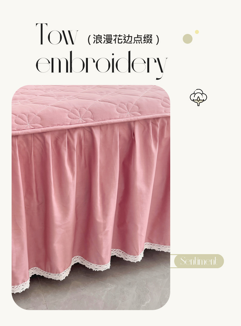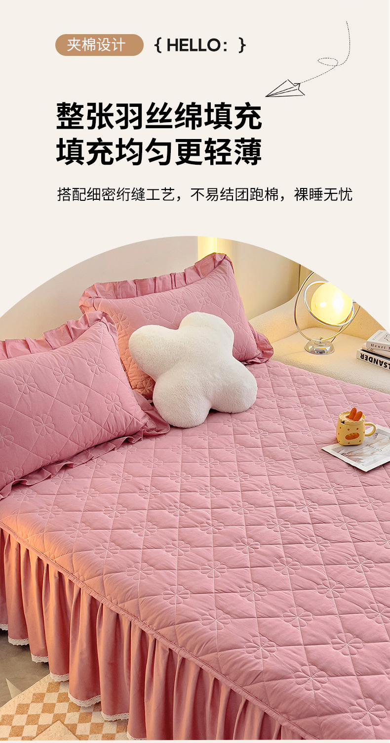 当前位置: 91家纺网 > 商品网购 > 床上用品 > 凉席 > 乳胶凉席 > 情煊家纺 2024新款全棉亲肤夹棉纯色印花床裙单品系列-单床裙 豆沙