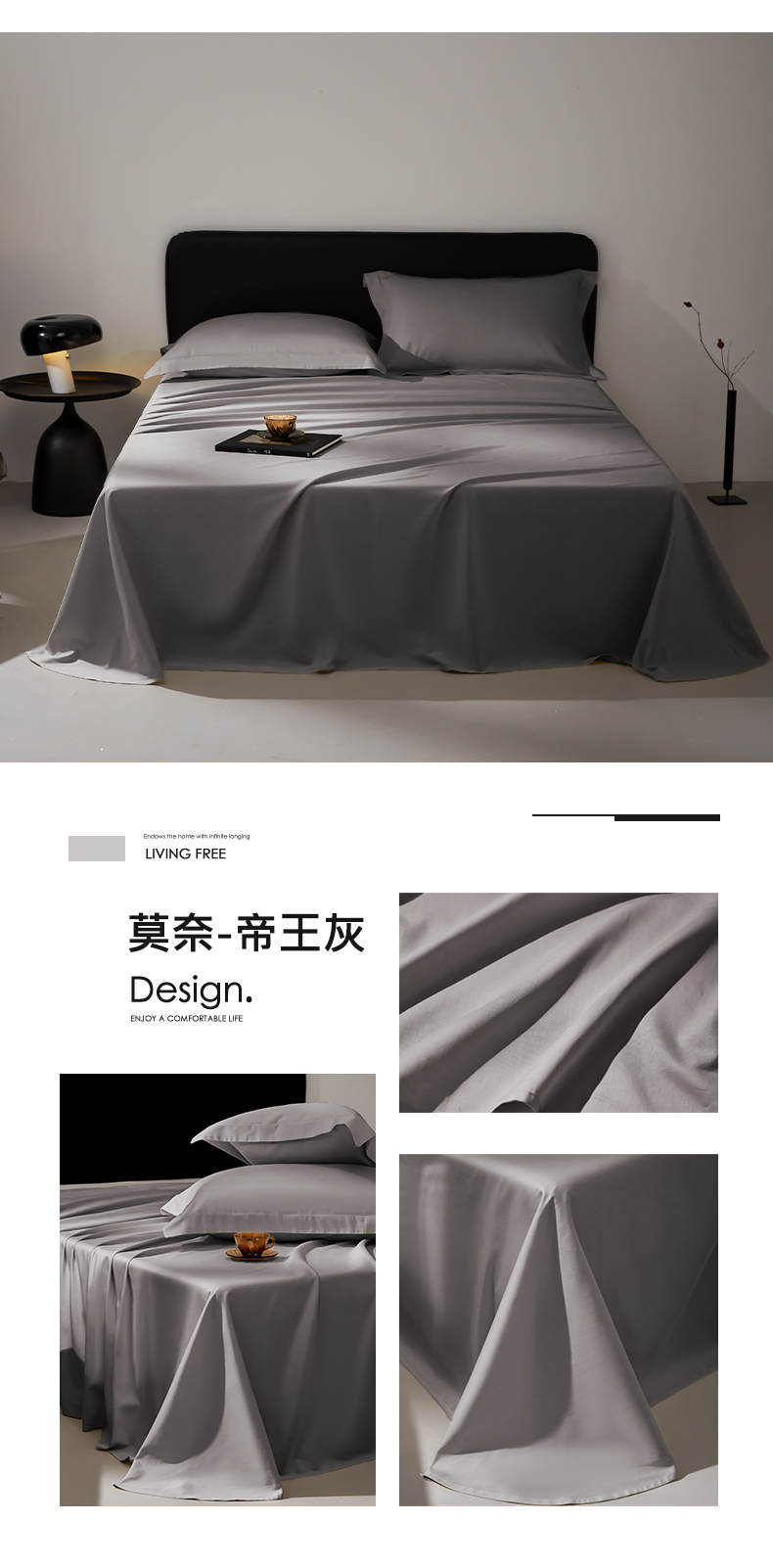 商品名称:秀色家纺 2025新款高端酒店纯色50支贡缎长绒棉床单单件纯棉全棉贡缎可裸睡单双人 莫奈-帝王灰