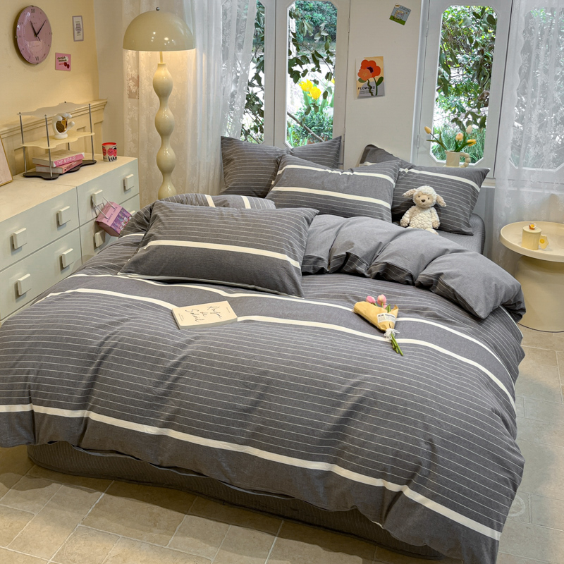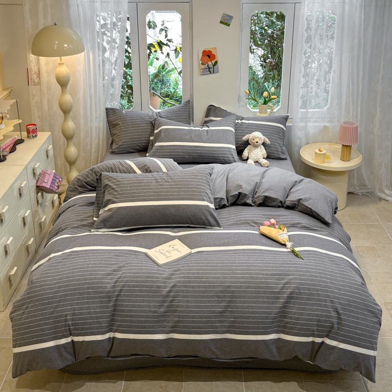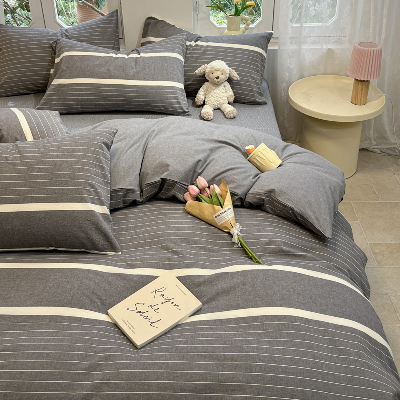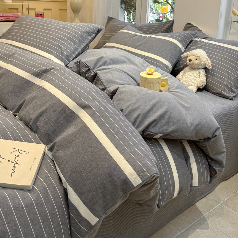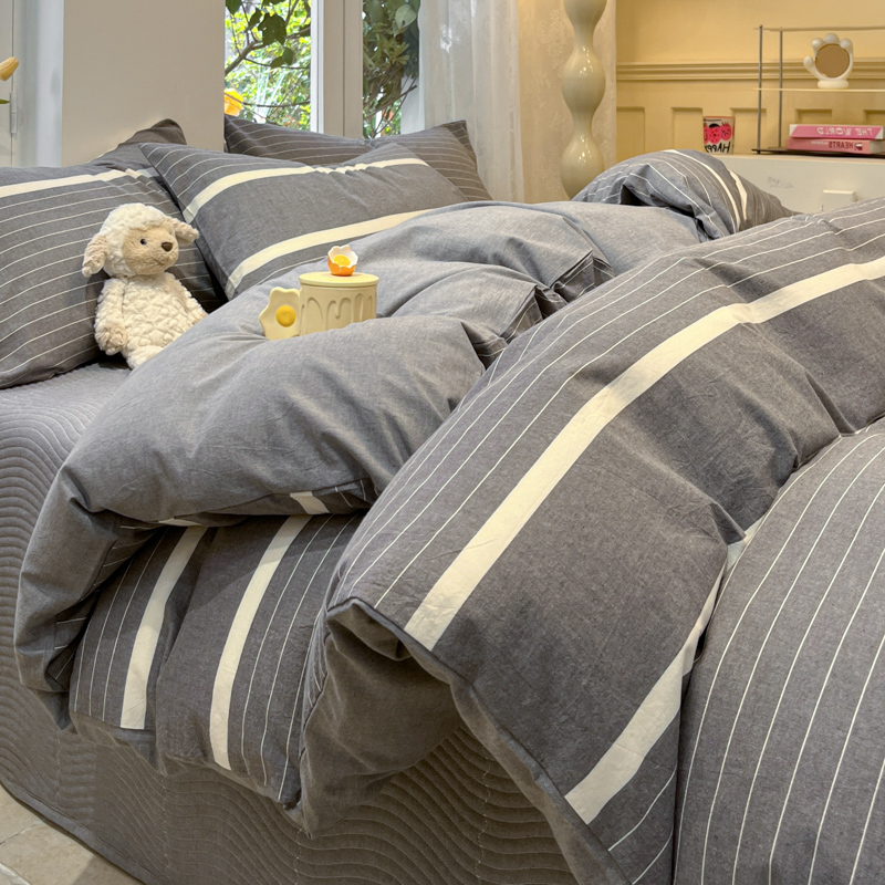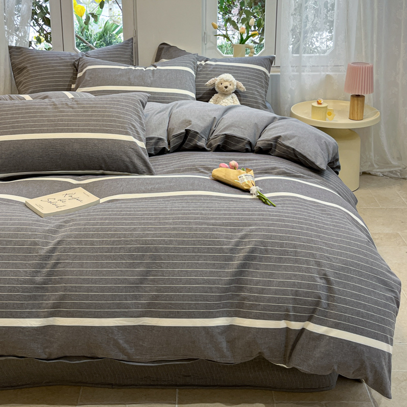 喜居 2024新款全棉色织被套单被套纯棉被套全棉被套 光阴灰