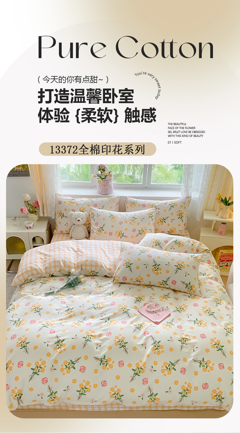 商品名称:洺兰家居 2025年新款13372全棉印花四件套纯棉小清新北欧风花卉床单床笠款套件 爱的誓言