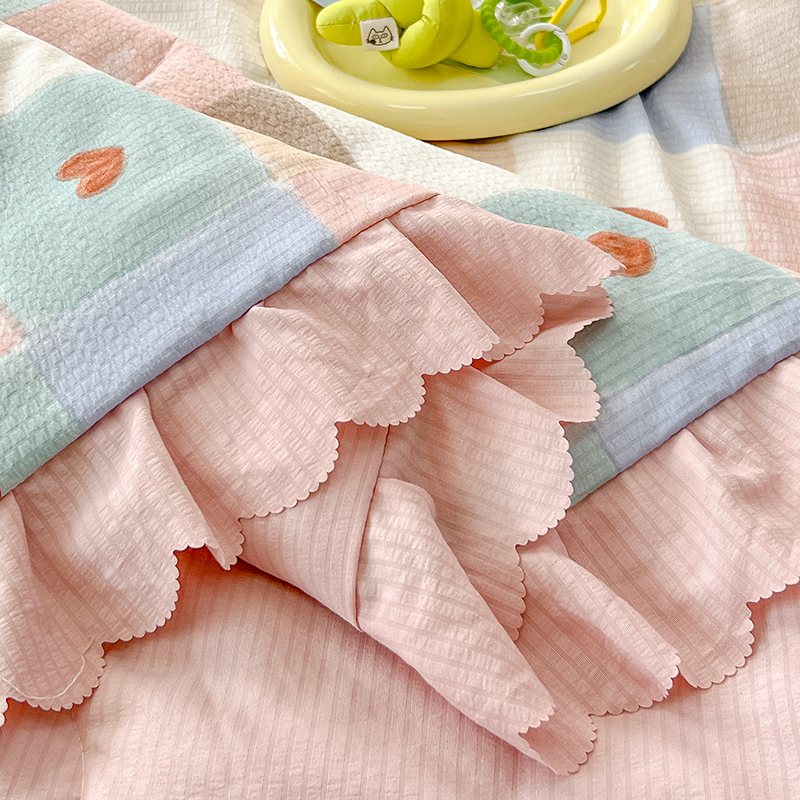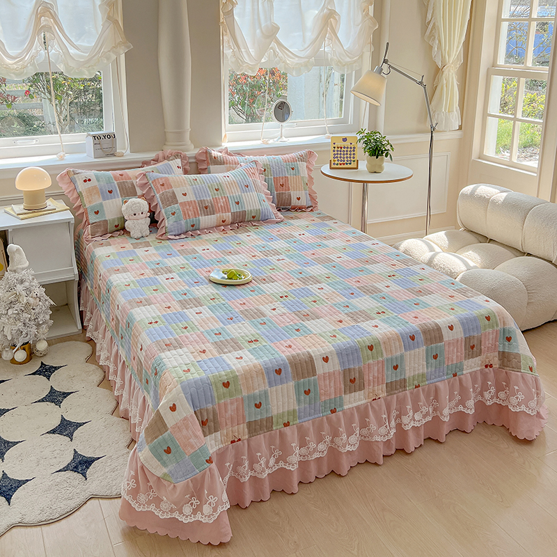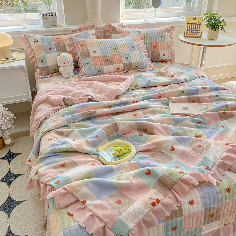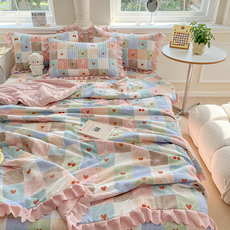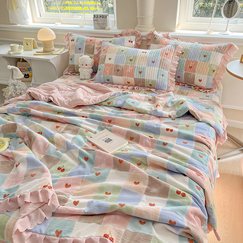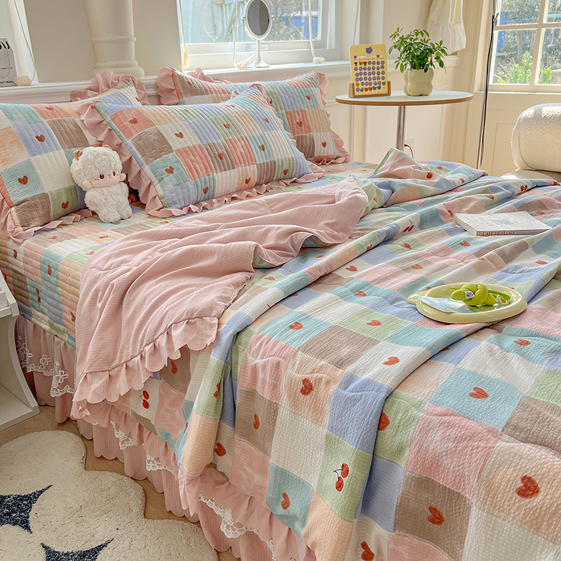 当前位置: 91家纺网 > 商品网购 > 床品套件 > 四件套 > 夏被四件套 > 雅眠居 2024直播爆款泡泡棉床盖款夏被四件套双层蕾丝花边夹棉床裙款三件套 甜心樱桃