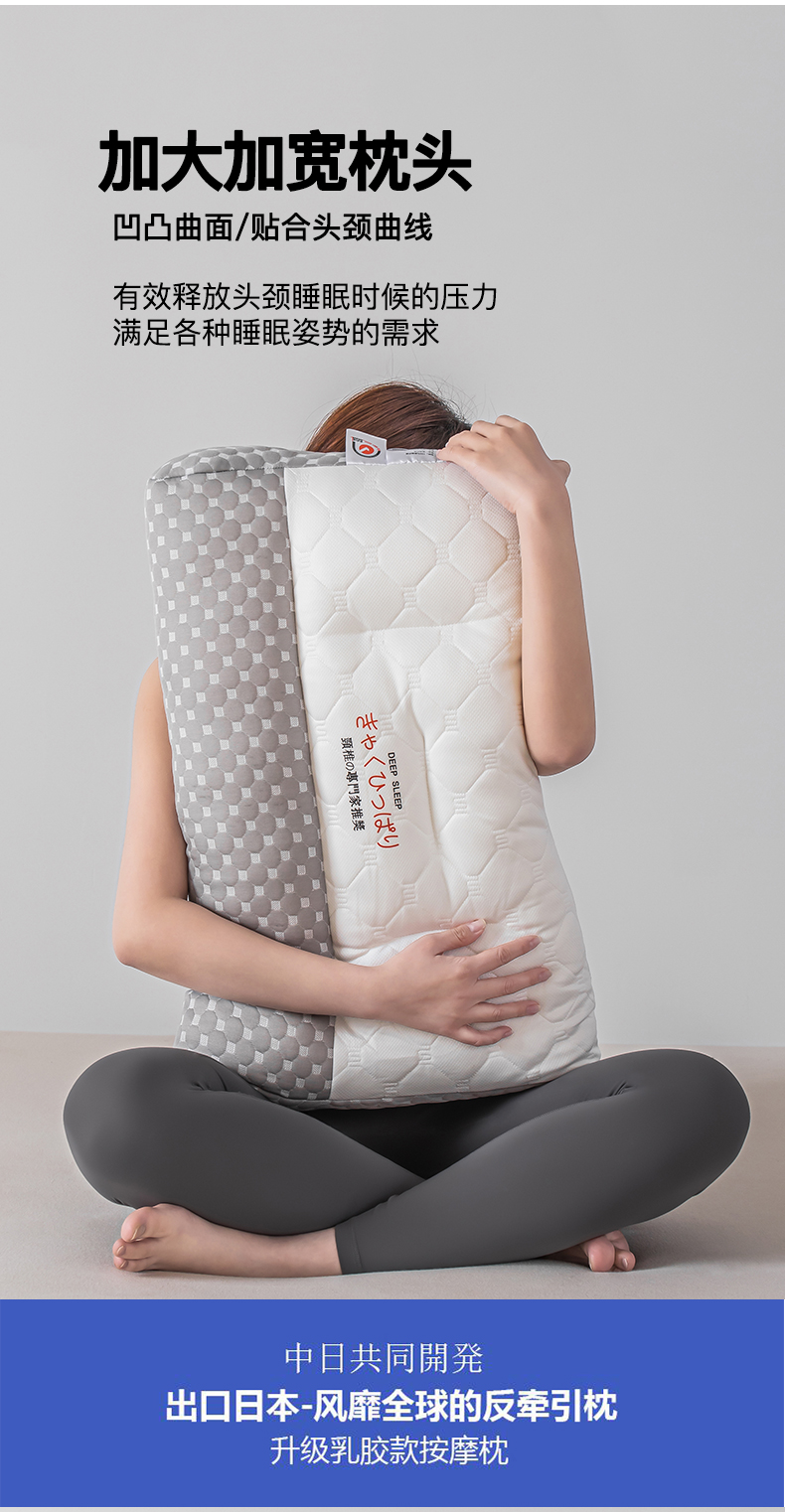当前位置: 91家纺网 > 商品网购 > 枕头/枕芯/保健枕/颈椎枕 > 普通枕芯 > 贵夫人 2024新款A类日式反牵引乳胶护颈枕枕头枕芯 浅灰 中枕48*74cm/对