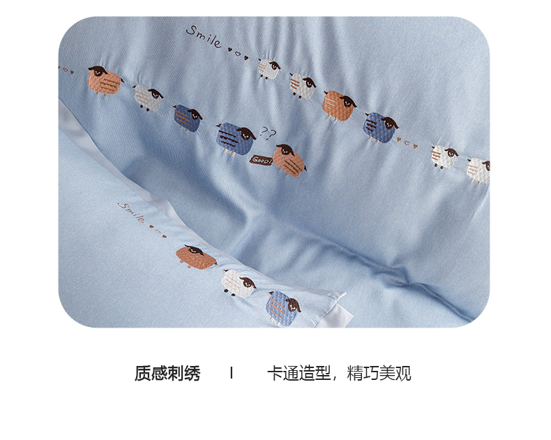 狂想家 2025新款丝锦缎刺绣四件套 咩咩羊景蓝