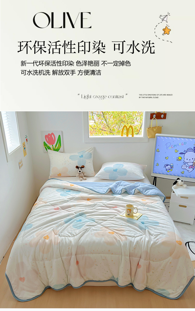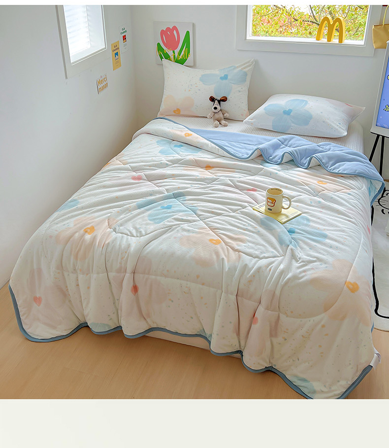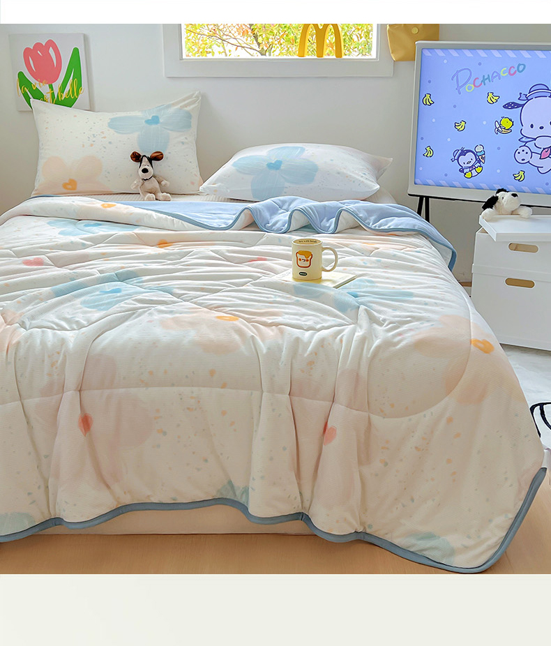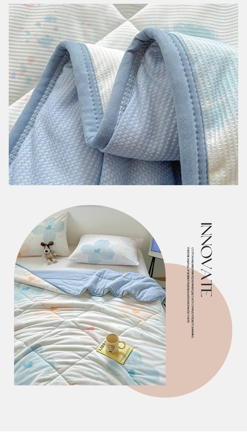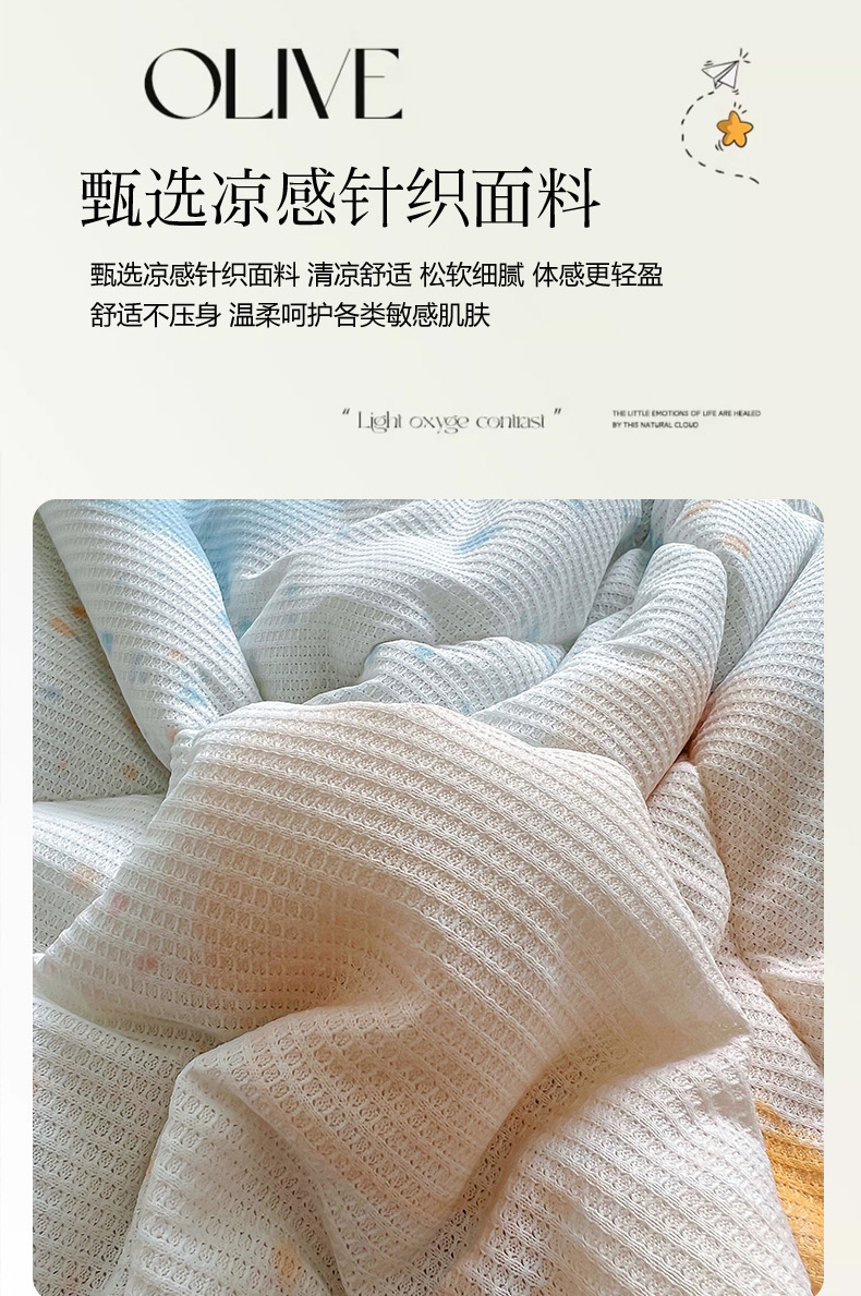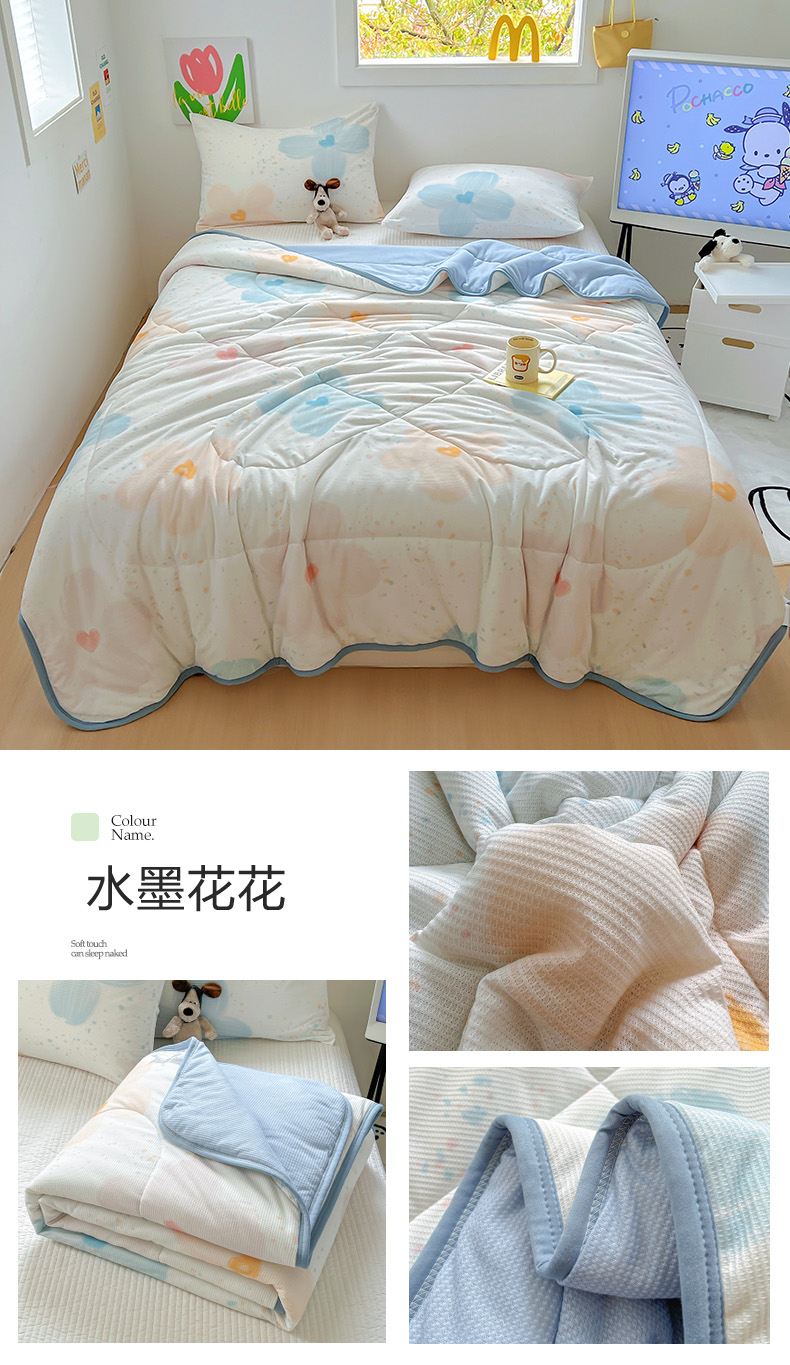 商品名称:柒月2024新款华夫格小清新卡通印花夏被 水墨花花-