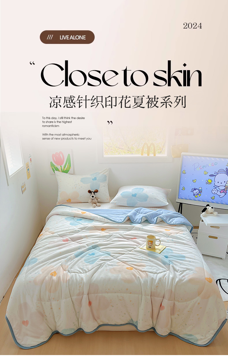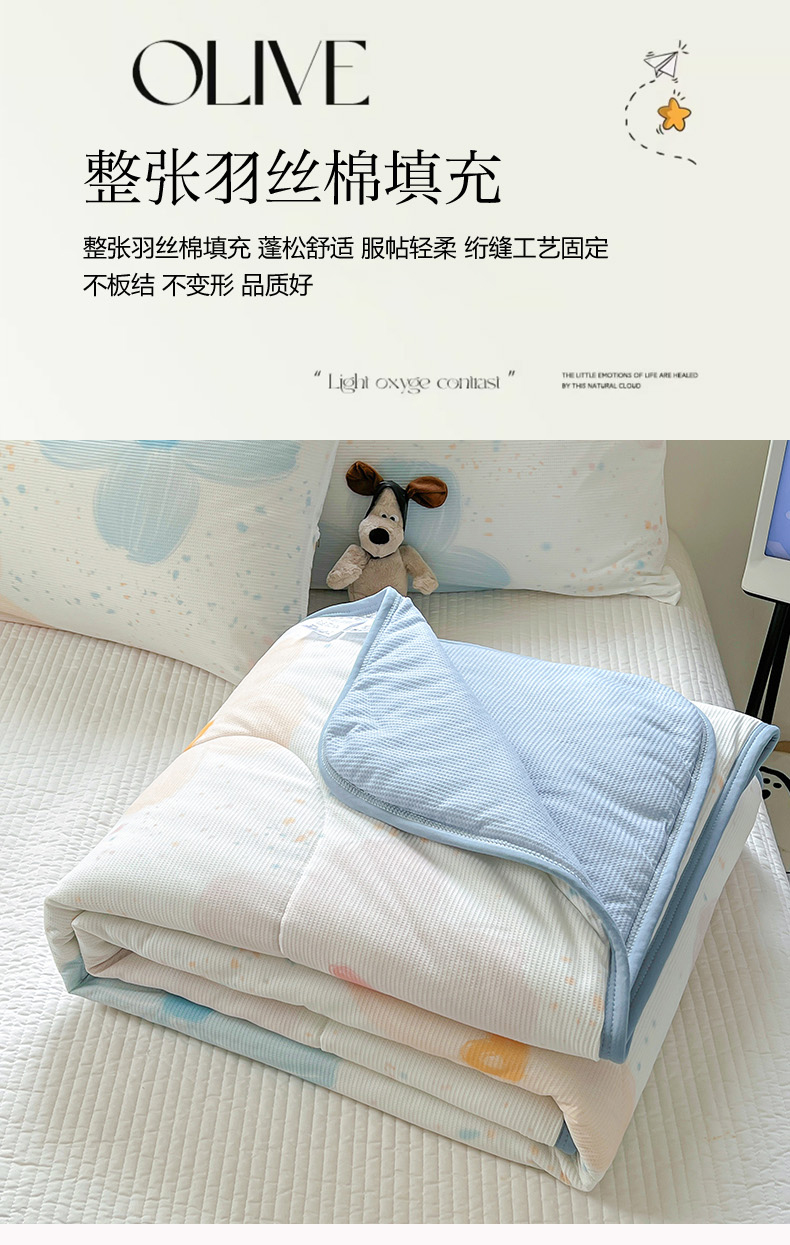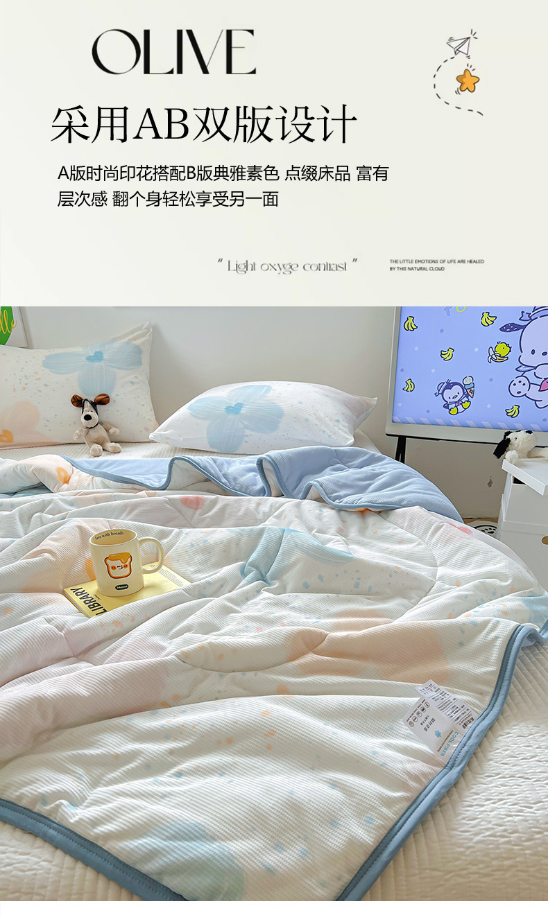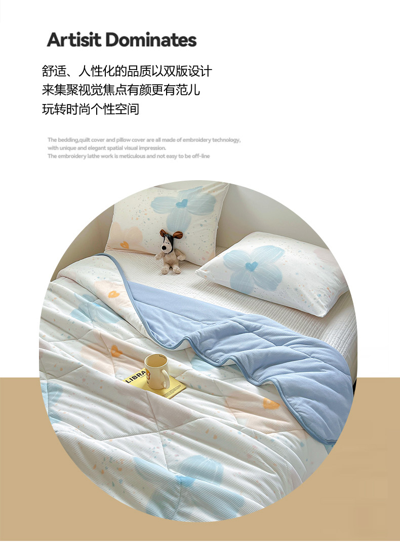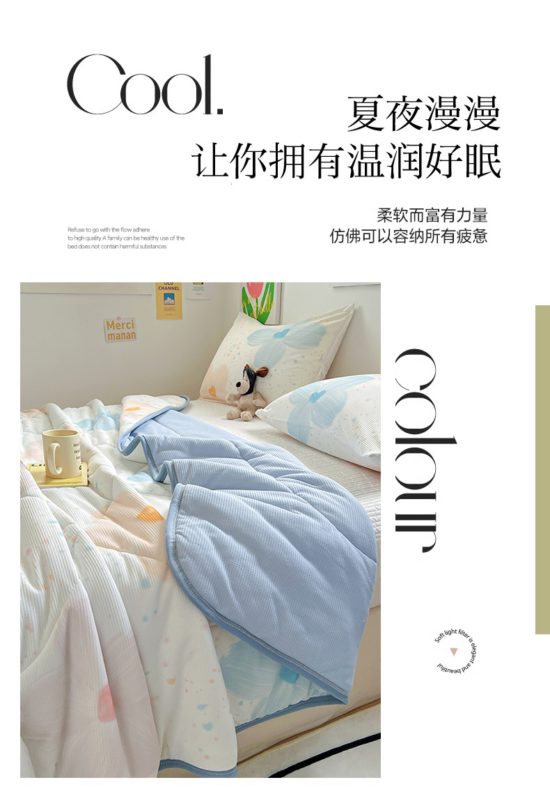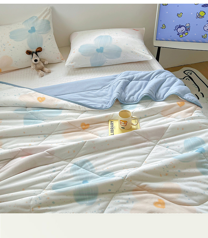 商品名称:柒月2024新款华夫格小清新卡通印花夏被 水墨花花-
