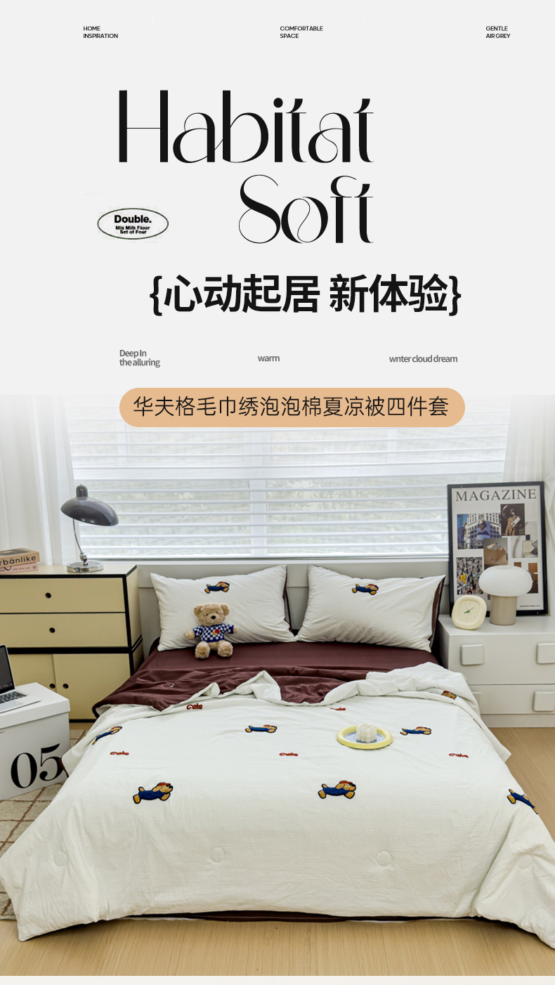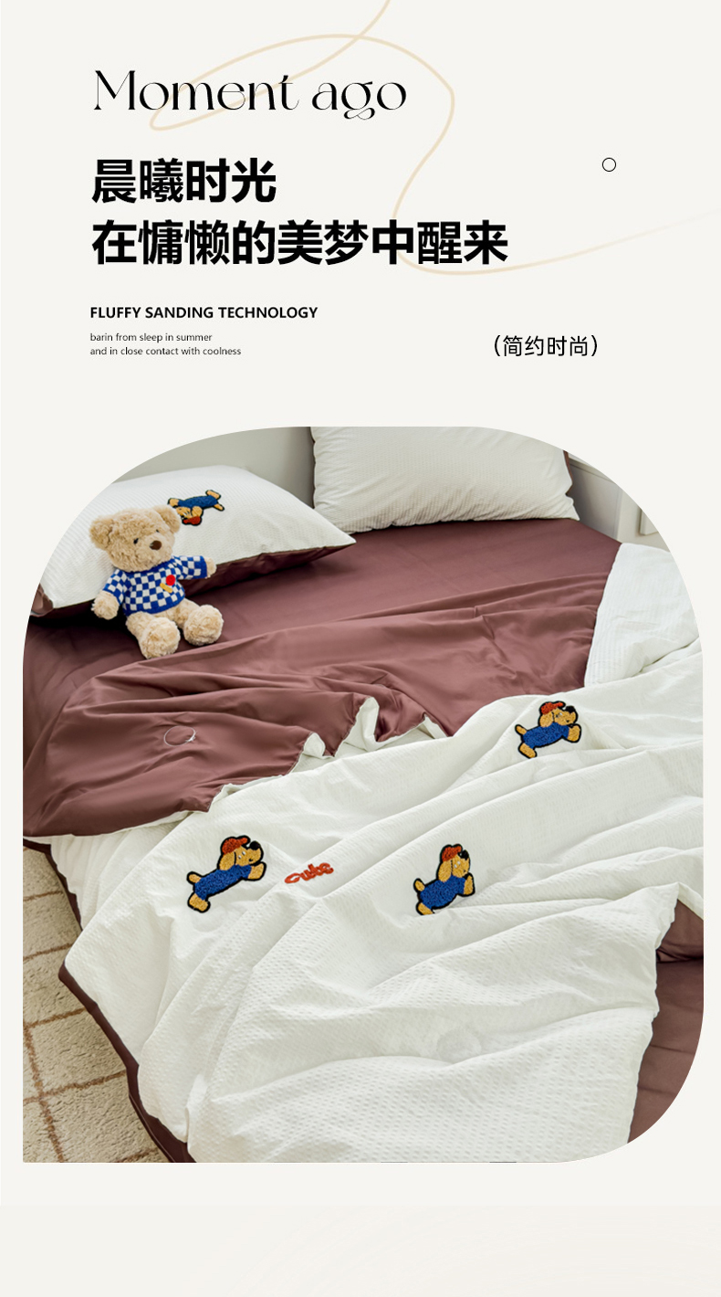 • 91家纺网 家纺一手货源 找家纺 红嘴企鹅 2025新款华夫格水洗棉毛巾绣夏被四件套 华夫格帕恰狗