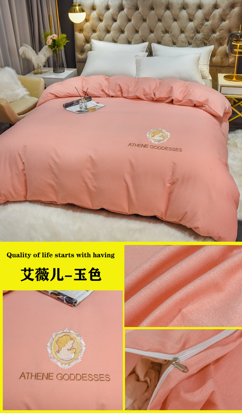 • 91家纺网 家纺一手货源 找家纺 艾迪尚家纺 2025新款纯色生态磨毛绣花单被套 艾薇儿-玉色
