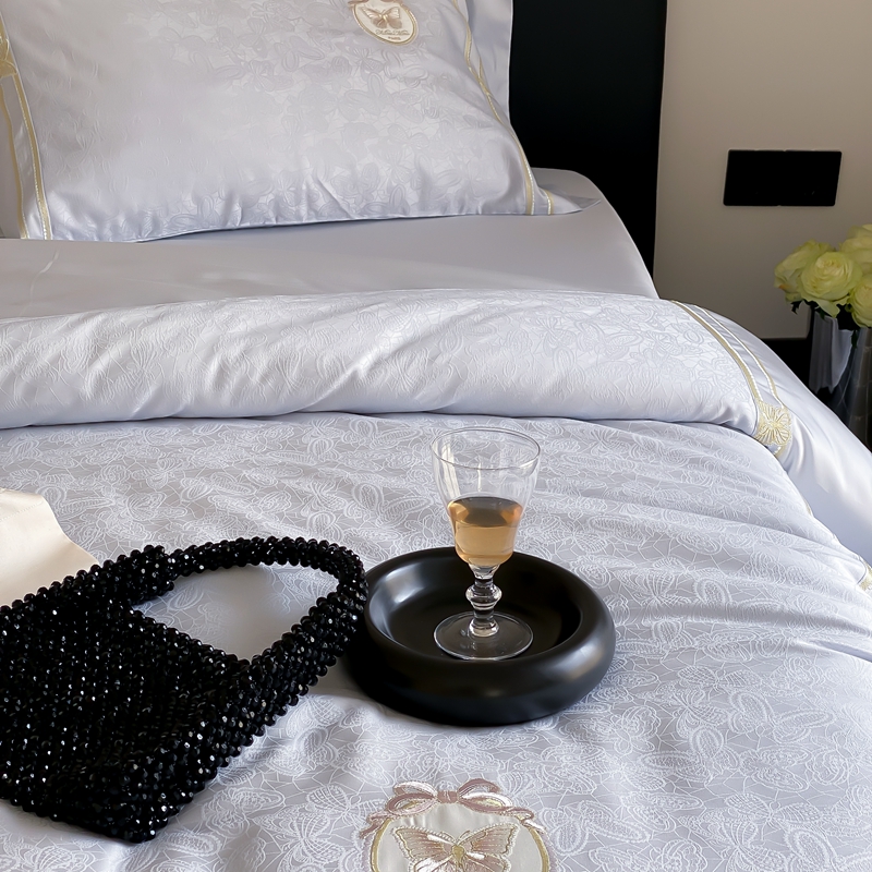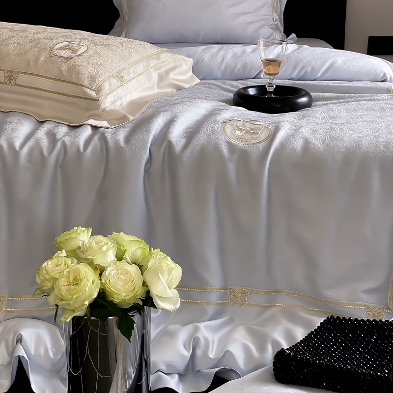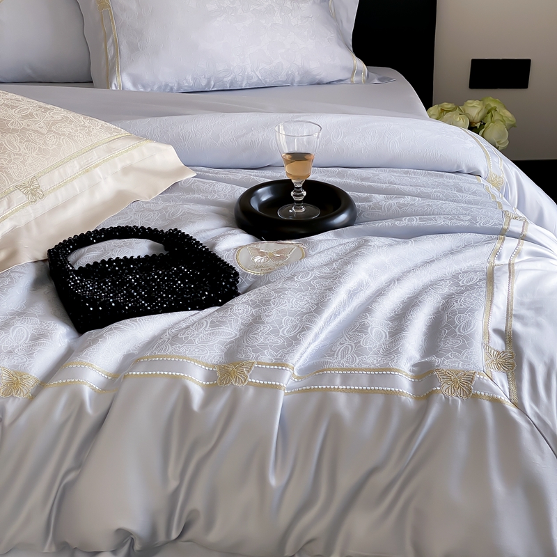 商品名称:MIU缪家居 2024新款100支天丝棉 (提花)自由之蝶系列四件套 自由之蝶-兰