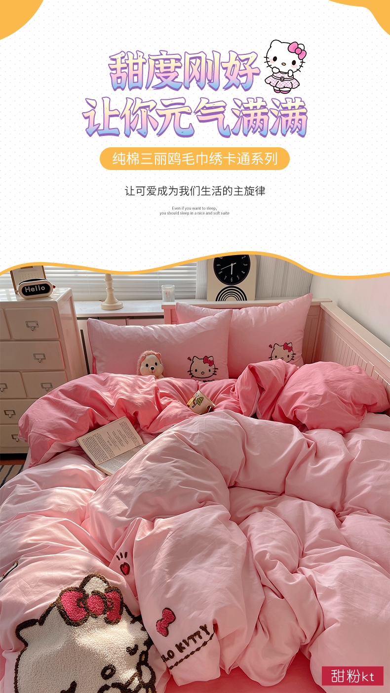 (总)金爱家 2025新款A类三丽鸥授权毛巾绣混搭少女加厚牛奶绒系列四件套,绒毛巾绣-草莓美乐蒂粉蓝,绒毛巾绣-草莓美乐蒂蓝粉,绒毛巾绣-草莓美乐蒂紫黄,绒毛巾绣-蝴蝶结KT粉蓝,绒毛巾绣-蝴蝶结KT蓝黄,绒毛巾绣-蝴蝶结KT绿粉,绒毛巾绣-蝴蝶结KT紫黄,绒毛巾绣-小熊KT粉蓝,绒毛巾绣-小熊KT蓝黄