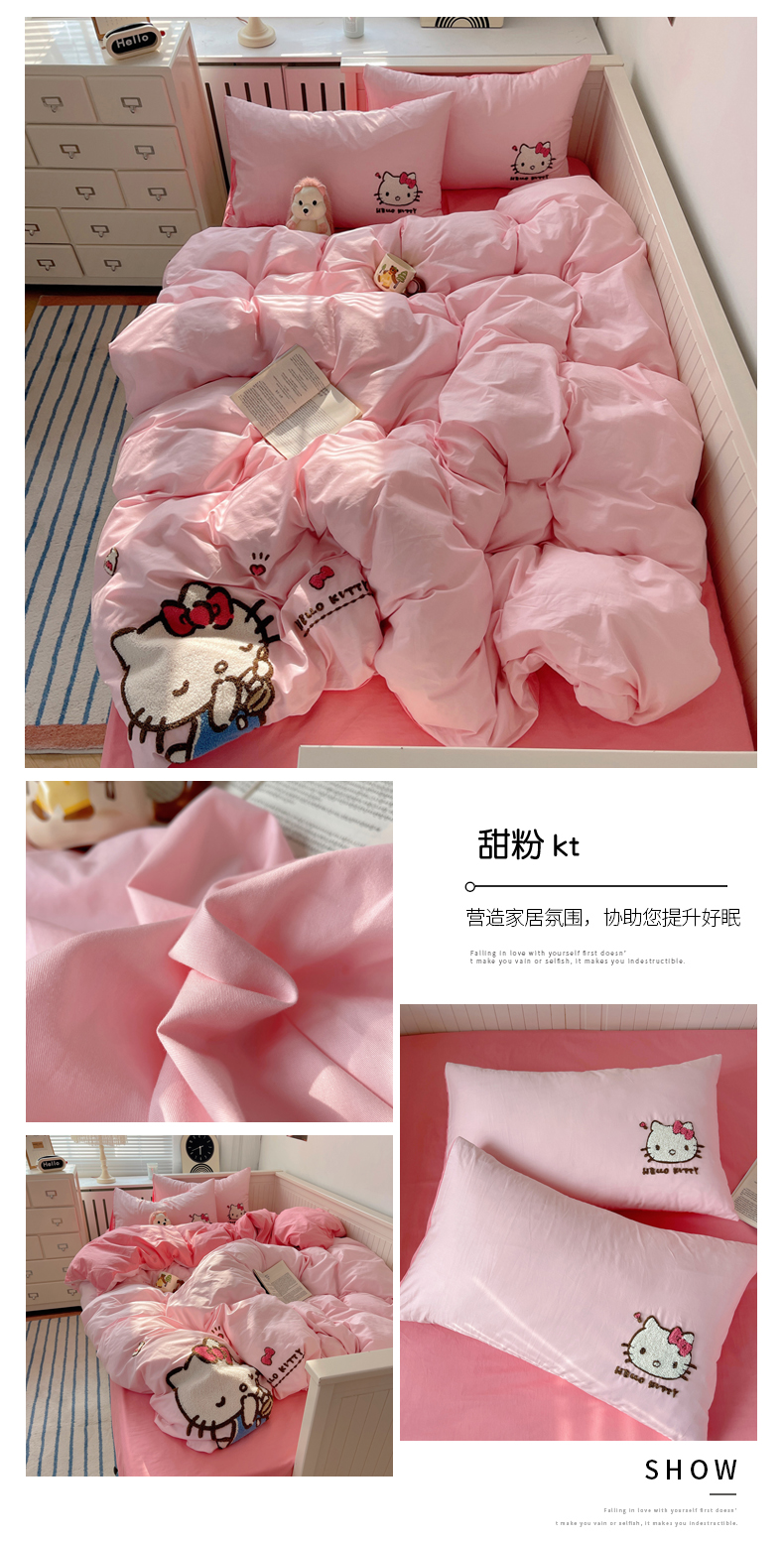 (总)金爱家 2025新款A类三丽鸥正版授权云柔水洗棉兔毛贴布绣刺绣软糯系列四件套,云柔水洗棉-贴布绣粉格KT,云柔水洗棉-贴布绣蓝格布丁狗,云柔水洗棉-贴布绣蓝格KT,云柔水洗棉-贴布绣美乐蒂,云柔水洗棉-贴布绣萌萌布丁狗,云柔水洗棉-贴布绣你好大耳狗,云柔水洗棉-贴布绣紫格库洛米