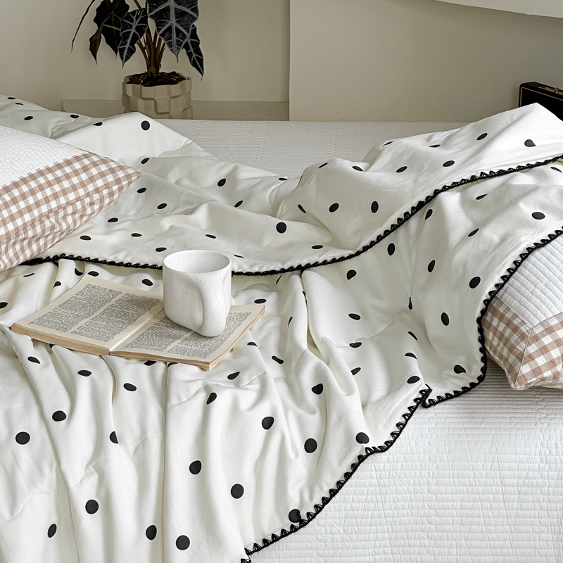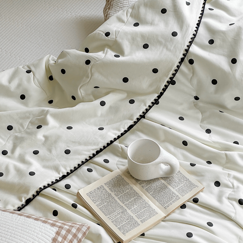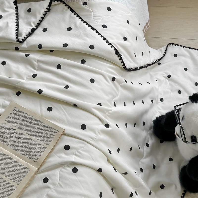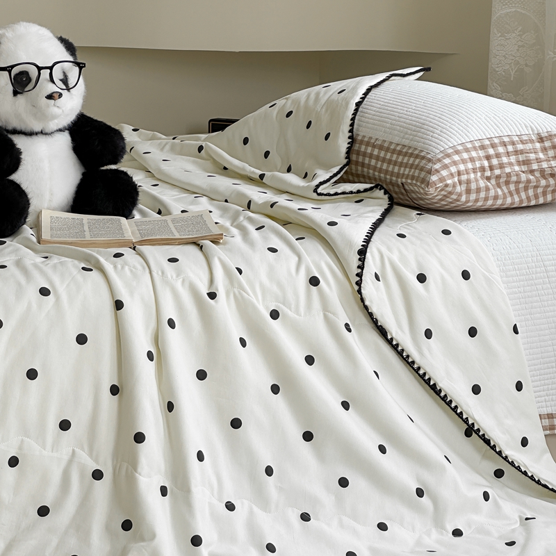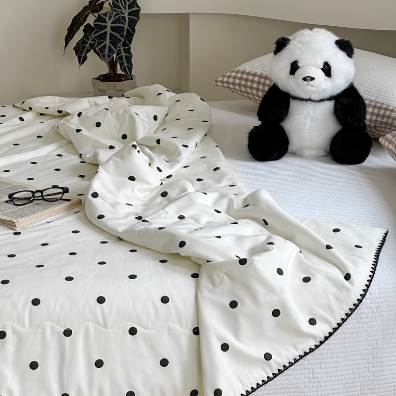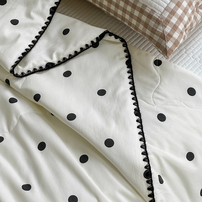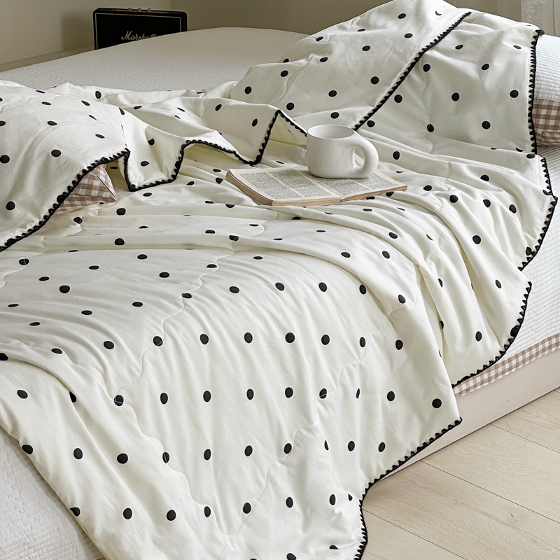 商品名称:洋铭区 2024新款贝壳边全棉印花夏被 黑小圆