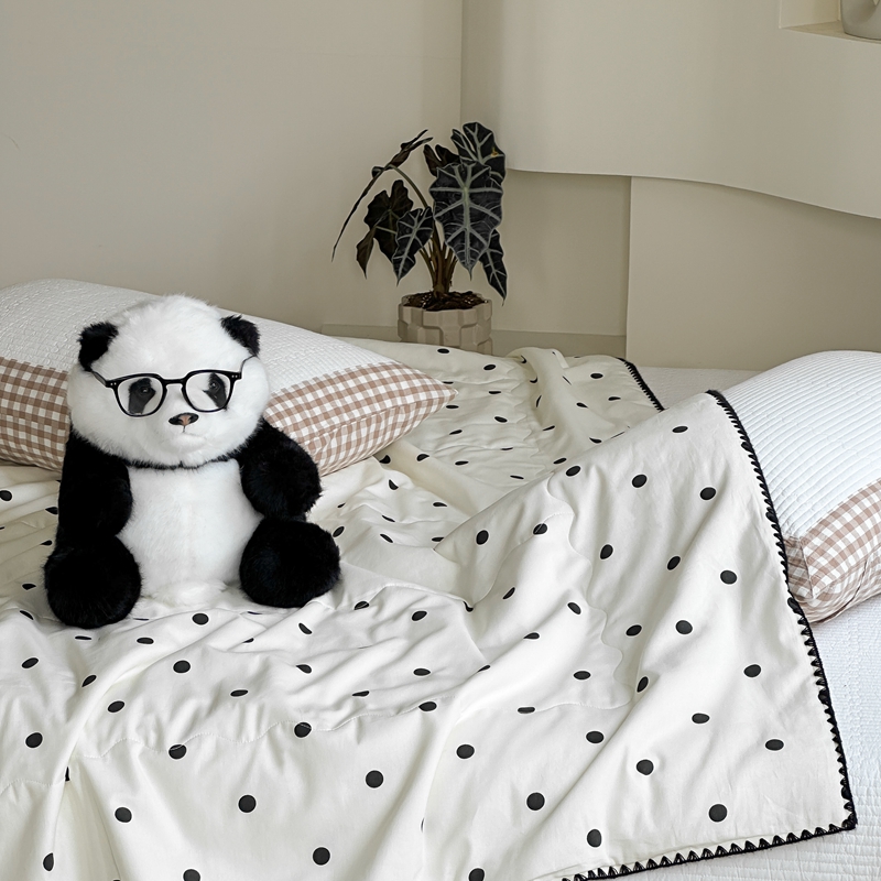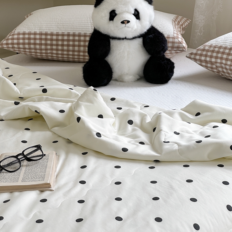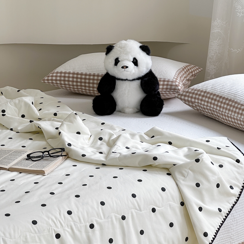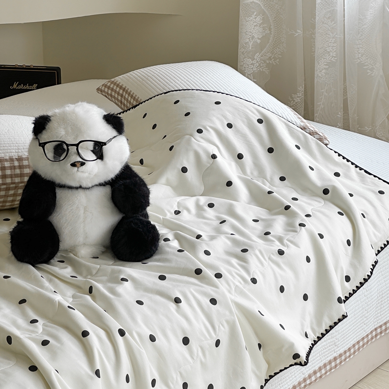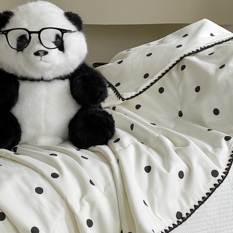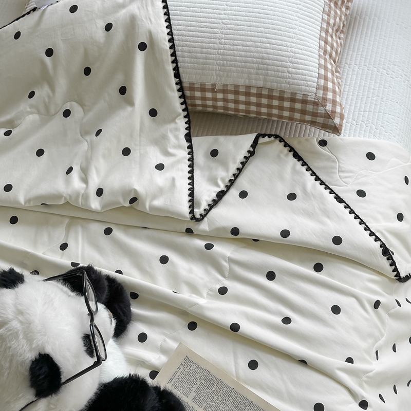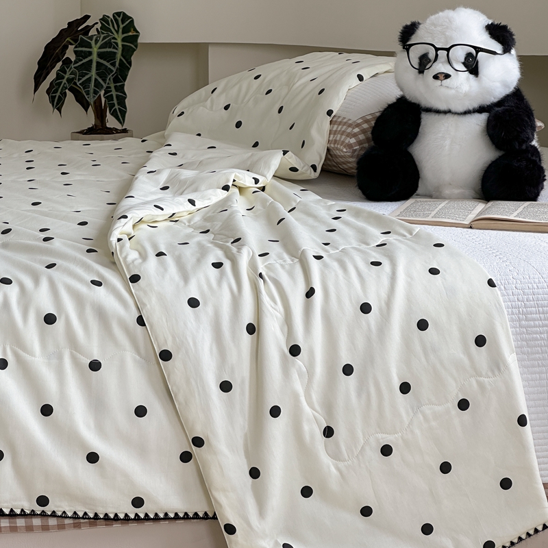 商品名称:洋铭区 2024新款贝壳边全棉印花夏被 黑小圆