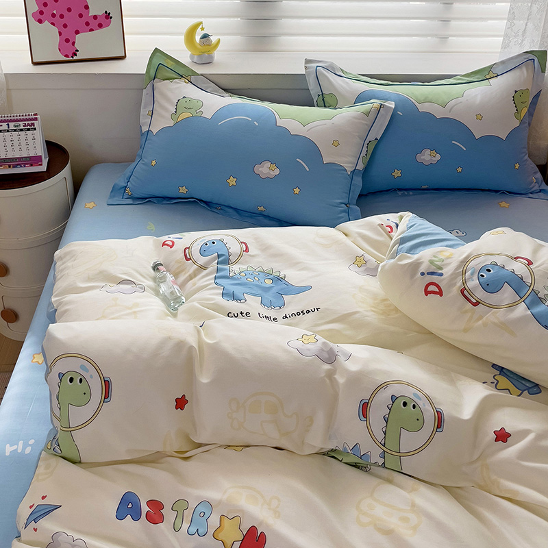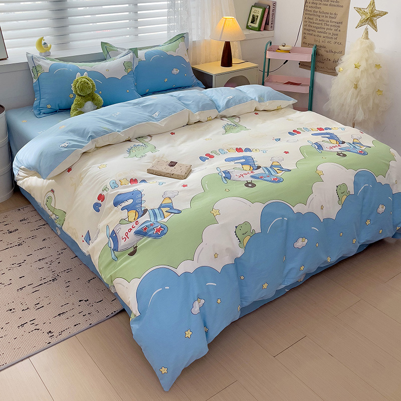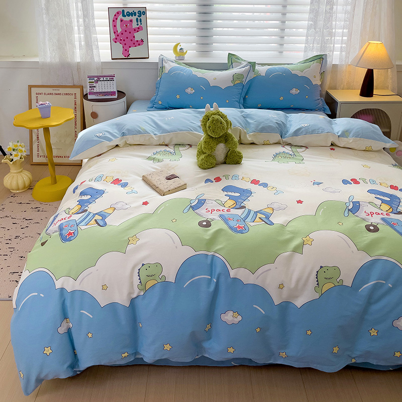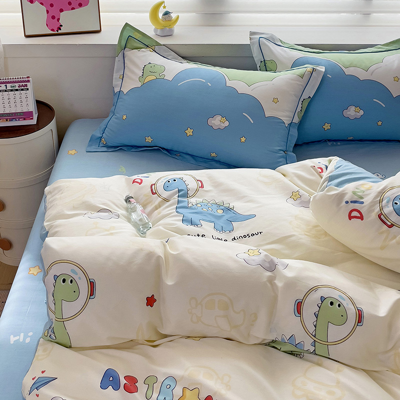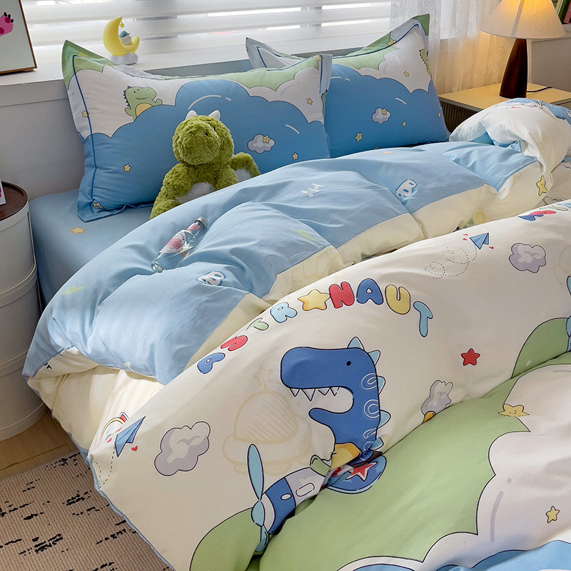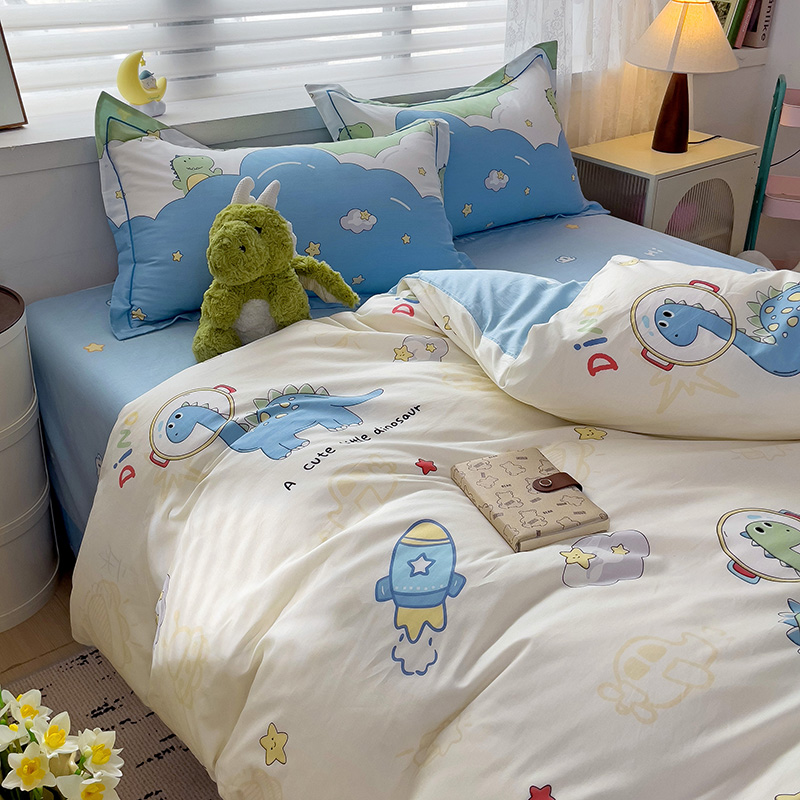 商品名称:乐童 2024新款直播爆款13070纯棉印花吊边款一字绣四件套-第七波 太空旅行