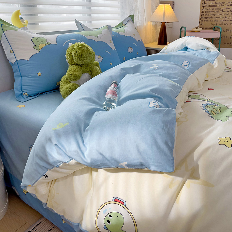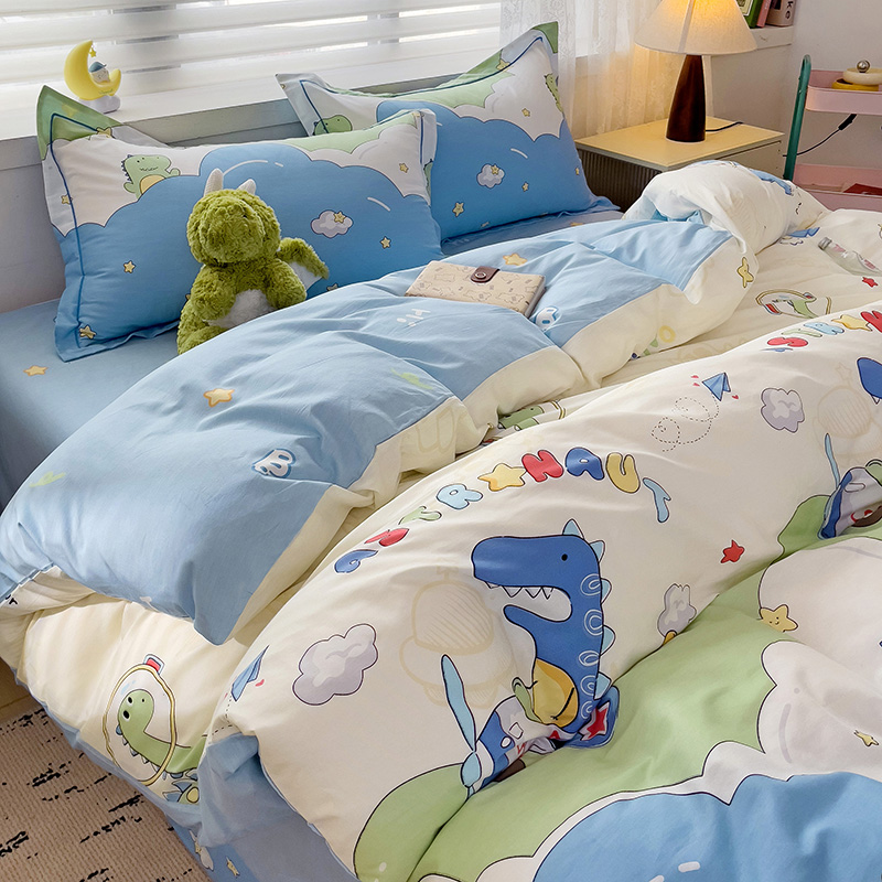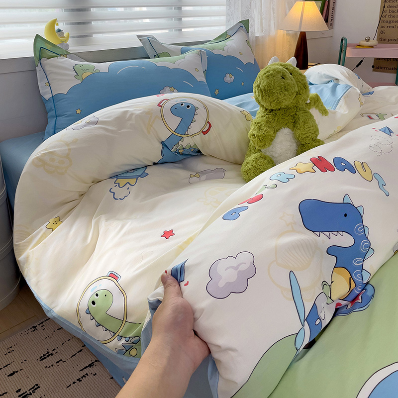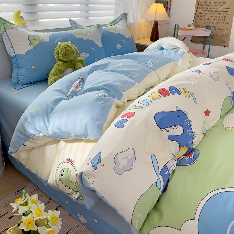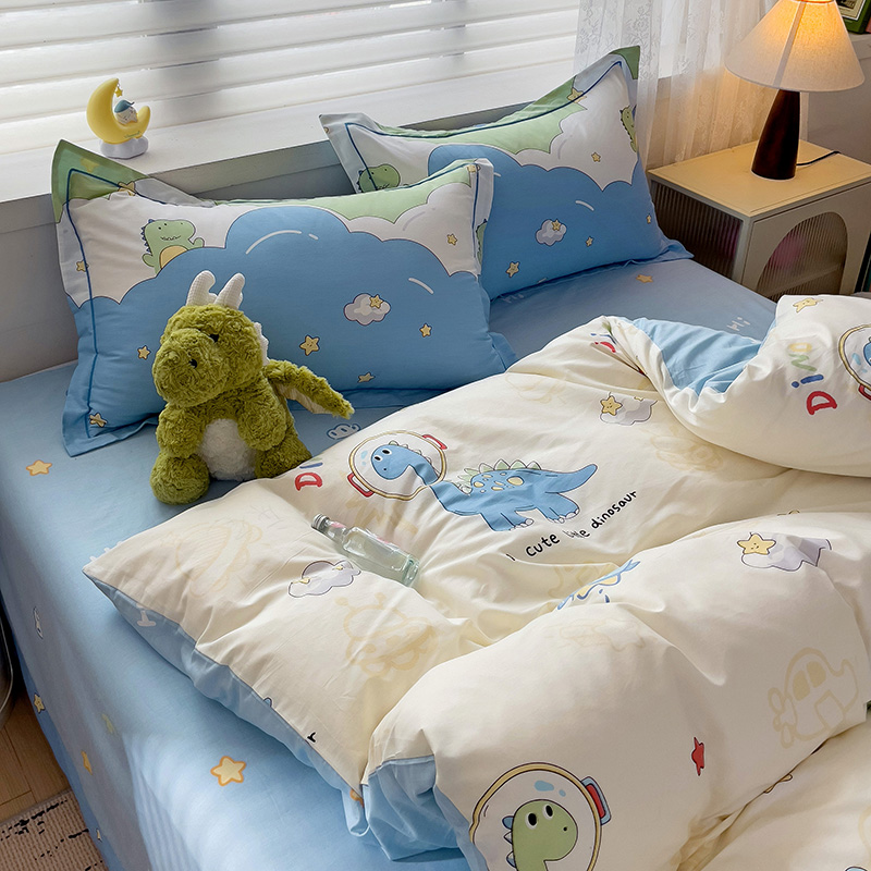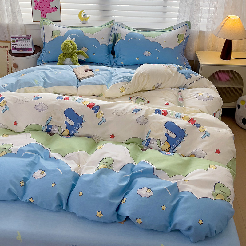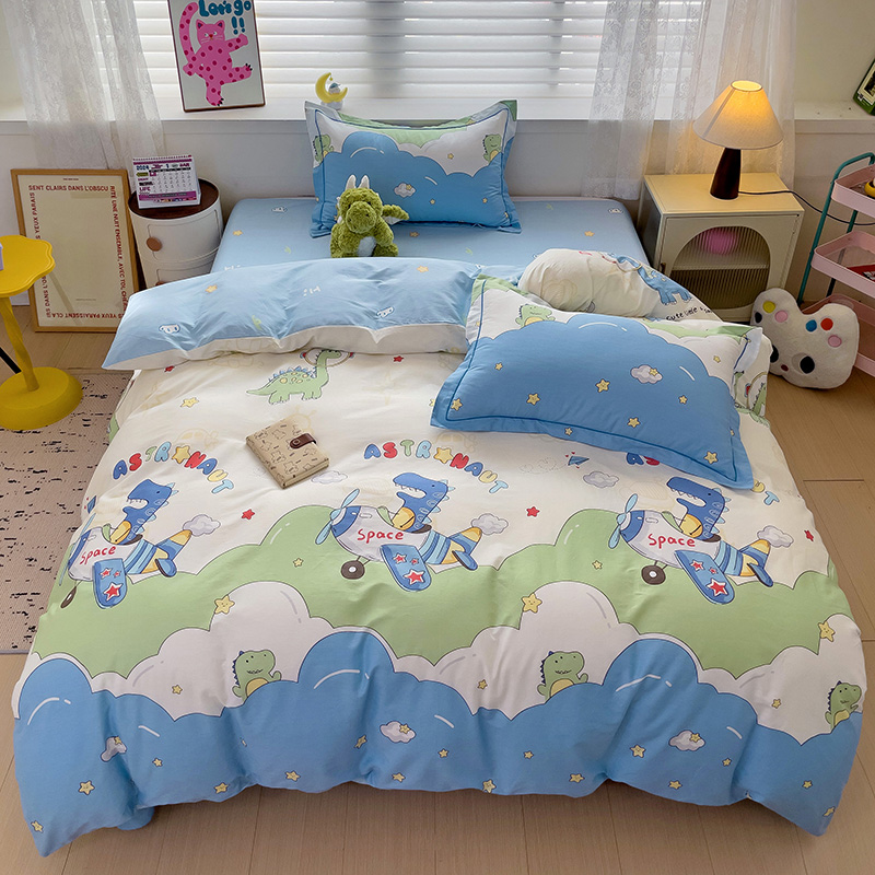 商品名称:乐童 2024新款直播爆款13070纯棉印花吊边款一字绣四件套-第七波 太空旅行