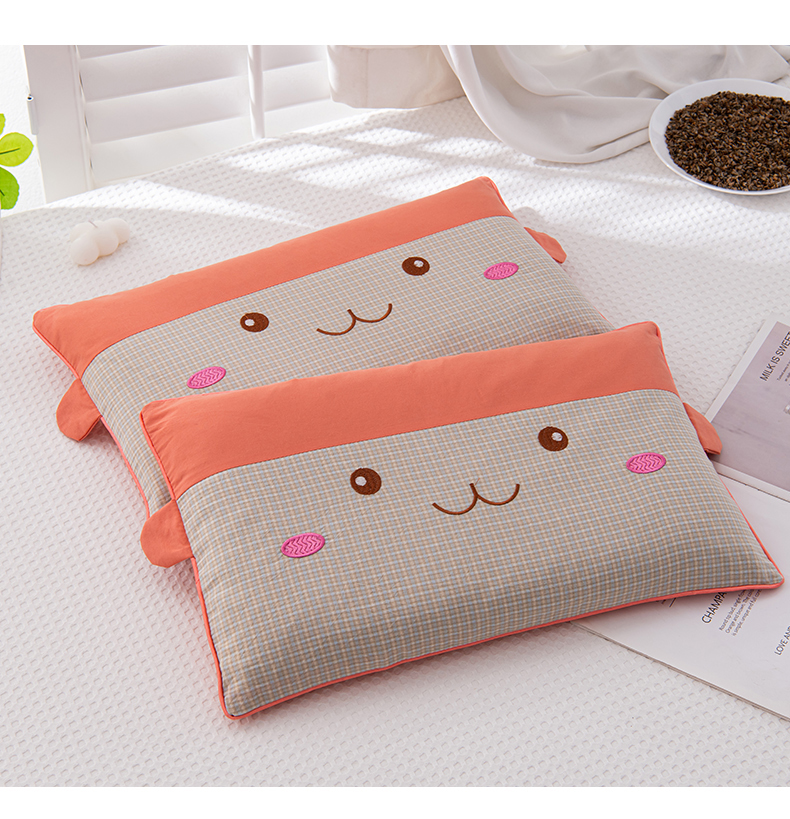 全棉水洗棉笑脸卡通兔荞麦枕-活力橙30*50cm/只