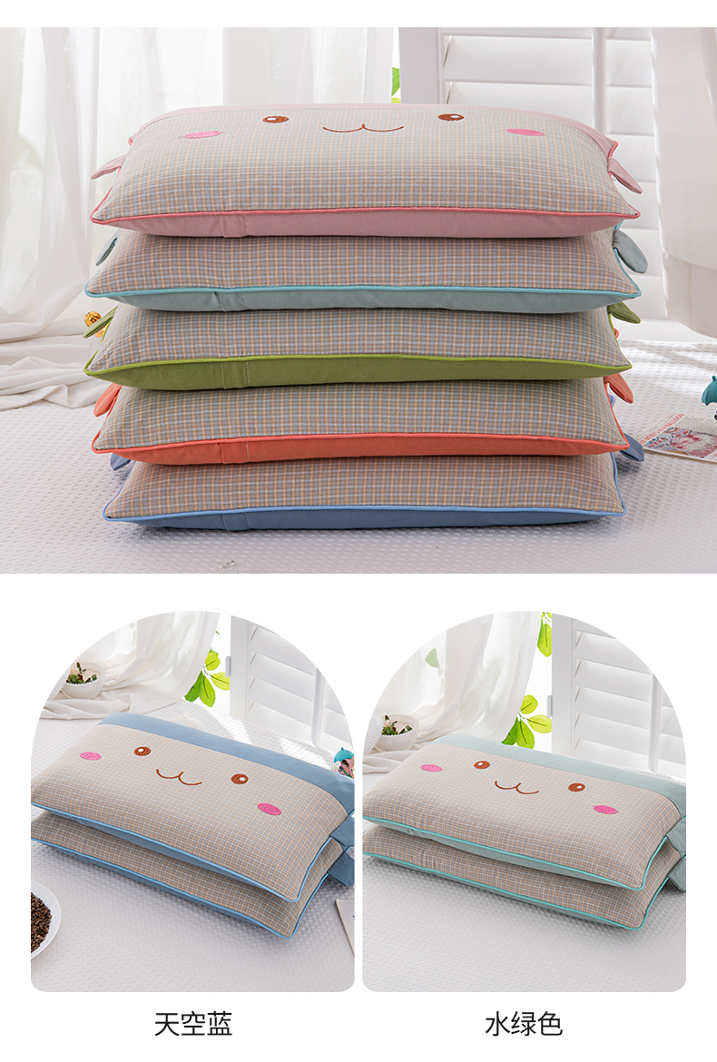 全棉水洗棉笑脸卡通兔荞麦枕-水绿色30*50cm/只