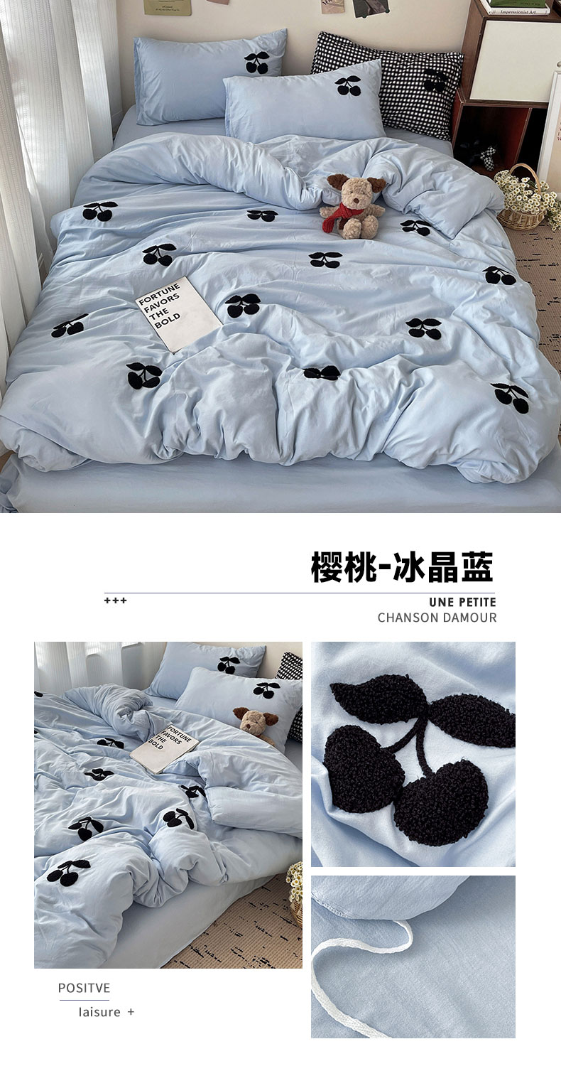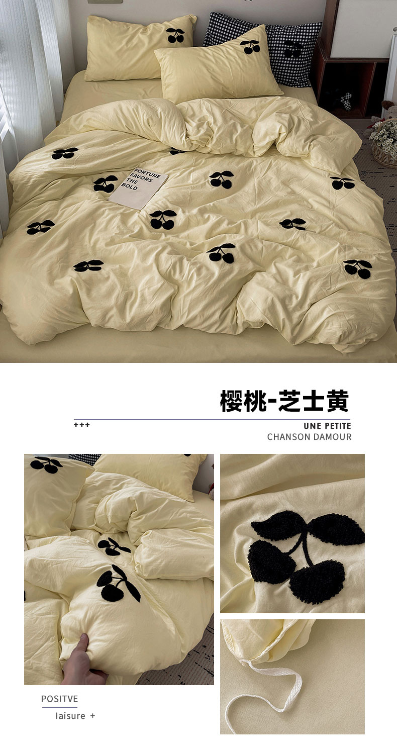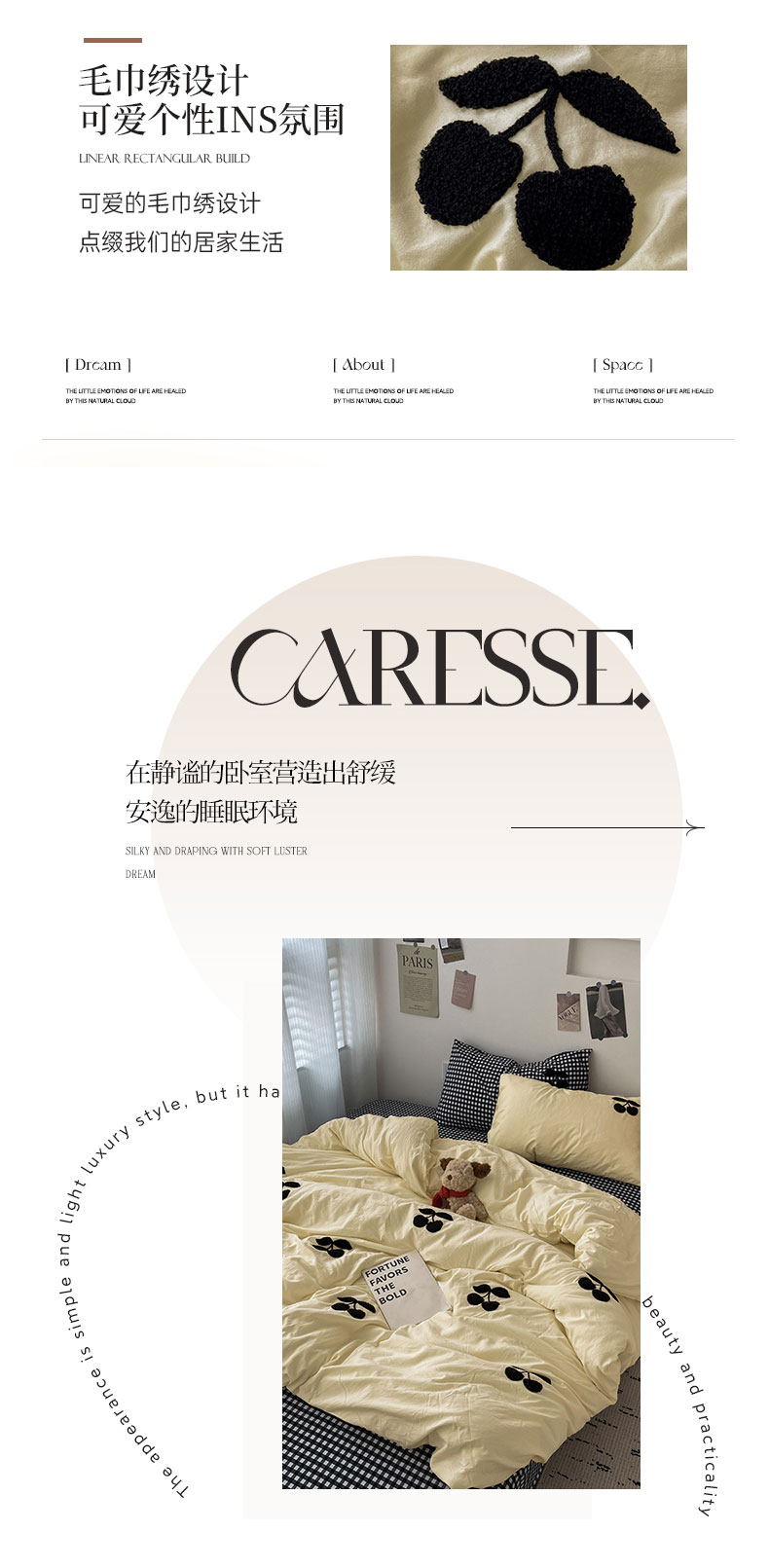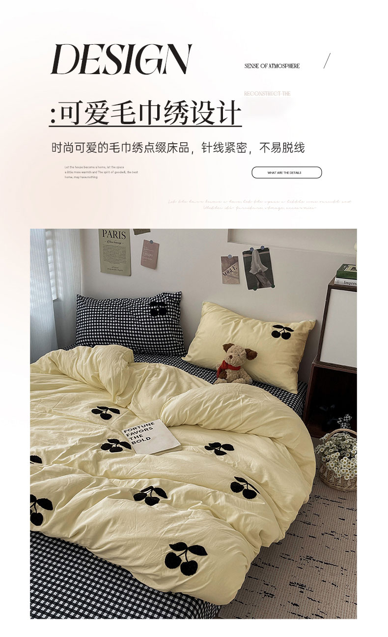 (总)尤米 2024新款可爱樱桃系列水洗棉毛巾绣单被套