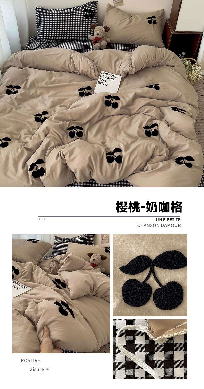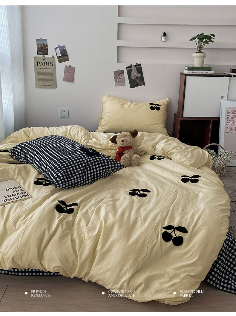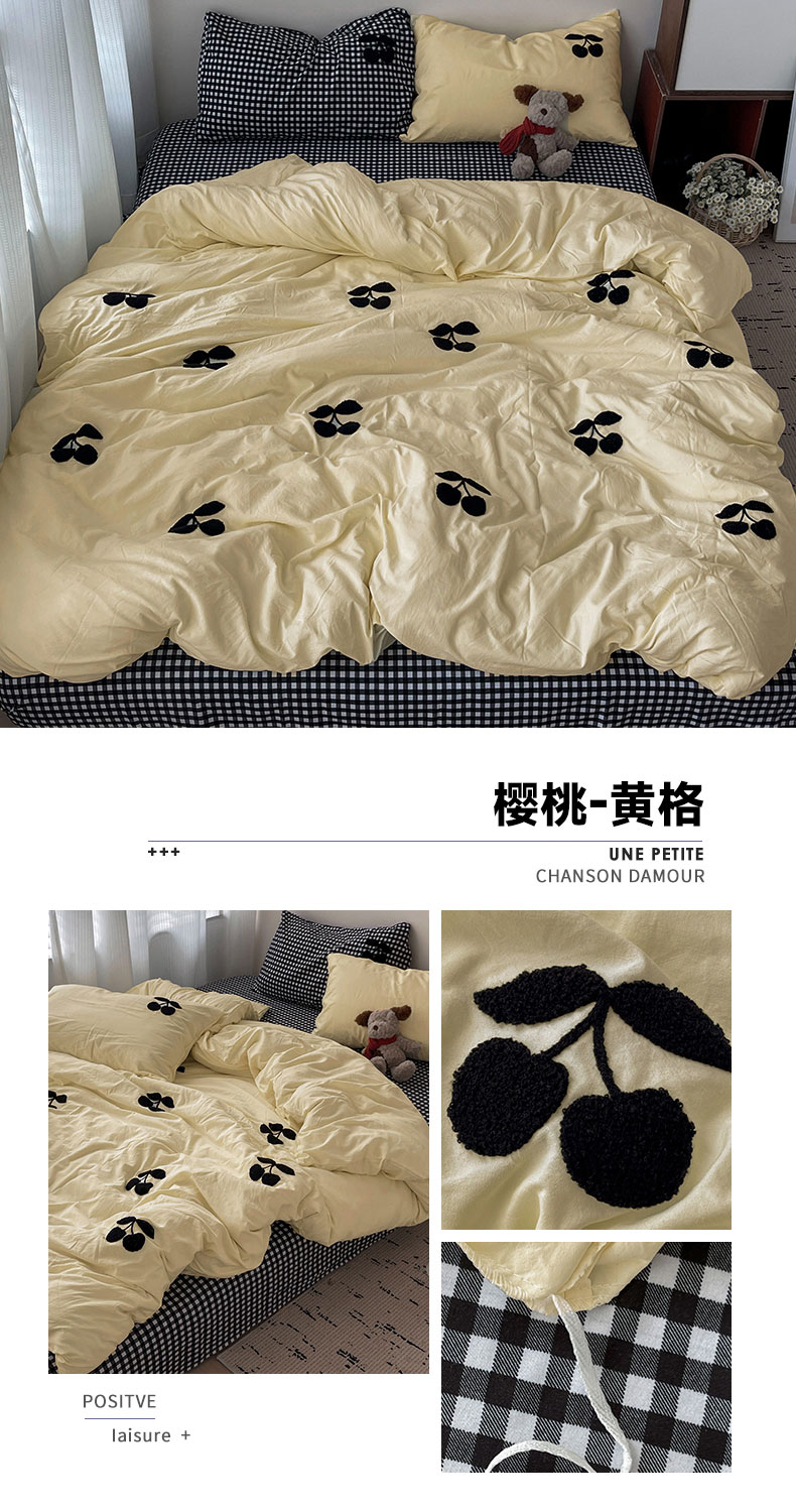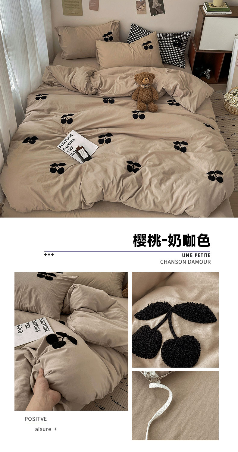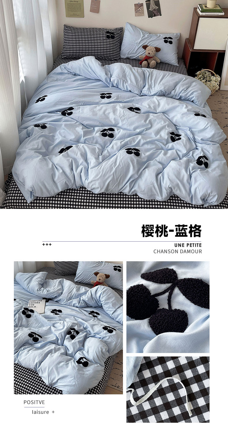 (总)尤米 2024新款可爱樱桃系列水洗棉毛巾绣单被套