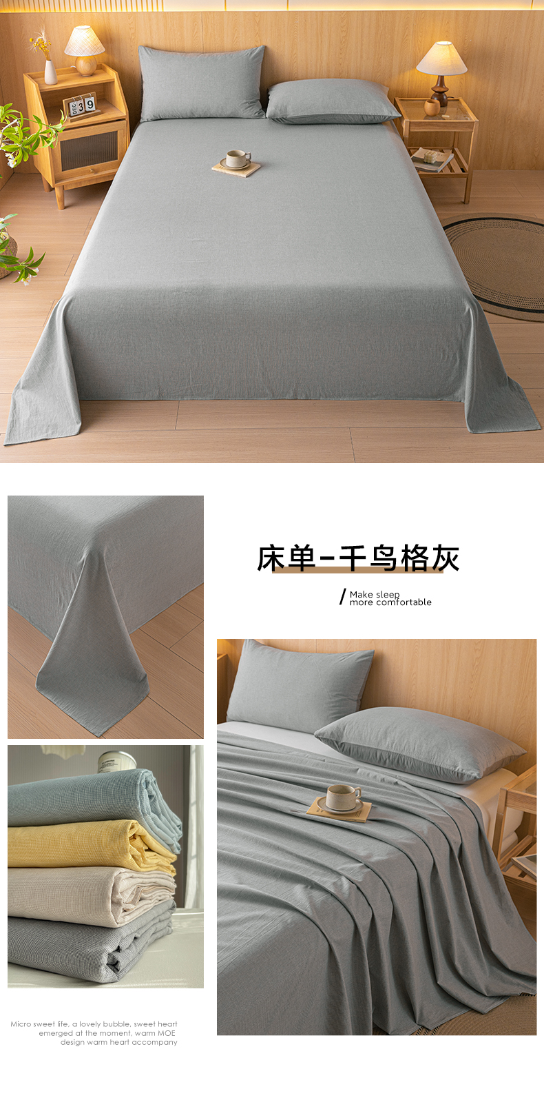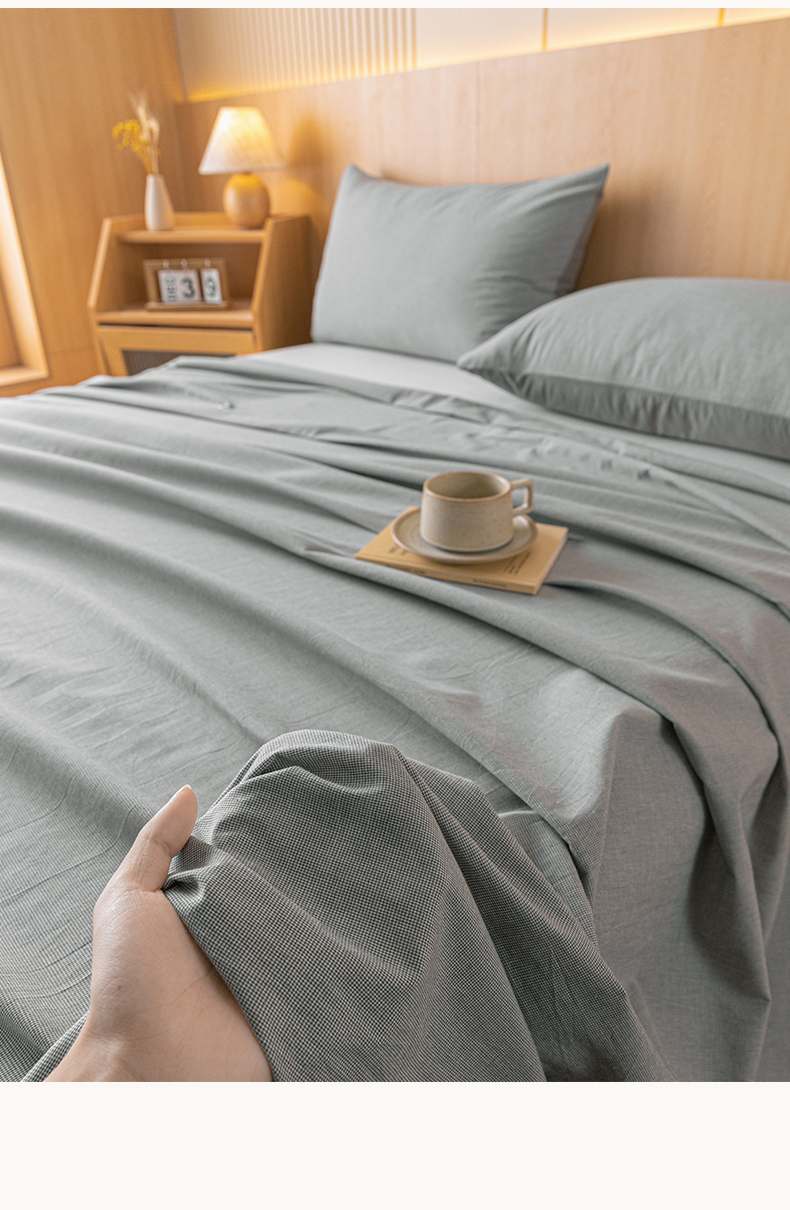 商品名称:雅居纺家纺 2024新款全棉色织水洗棉单床单 床单-千鸟格灰