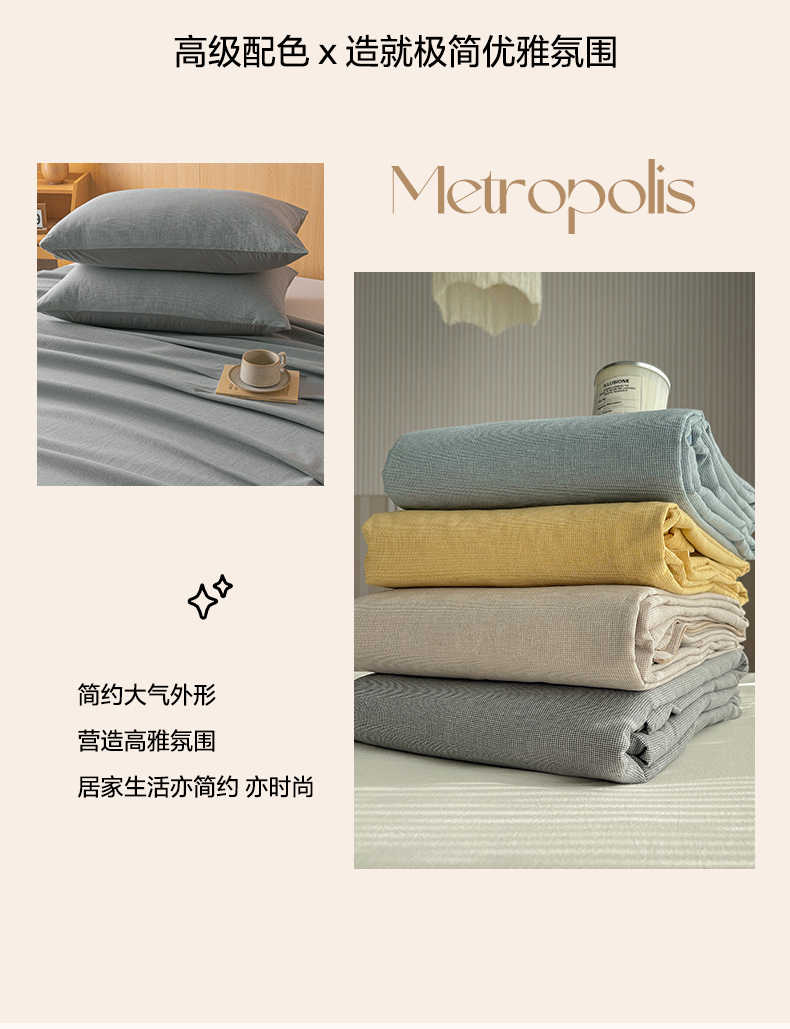 (总)雅居纺家纺 2022新款全棉华夫格普通款四件套,焦糖,米驼,奶油白,柔粉,深灰,雾蓝,月灰